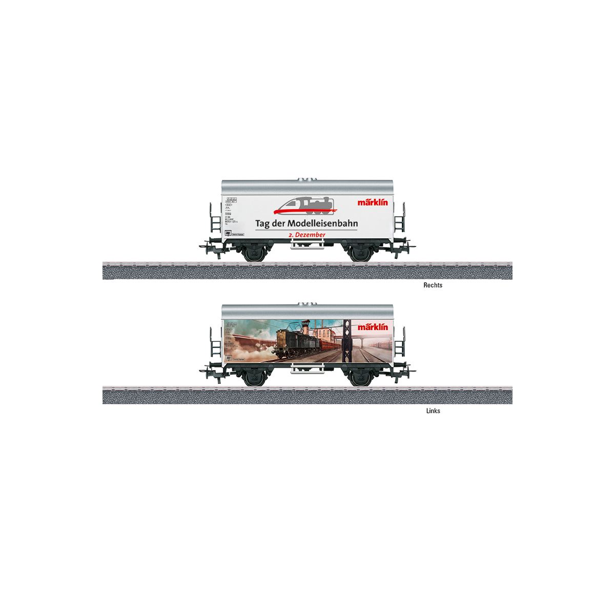 Vorbild: Kühlwagen als Privatwagen in der Gestaltung zum Internationalen Tag der Modelleisenbahn am 2. Dezember. Modell: Beide Seiten sind unterschiedlich gestaltet. Mit Relex-Kupplungen. Länge über Puffer 11,5 cm. Gleichstromradsatz E700580..
