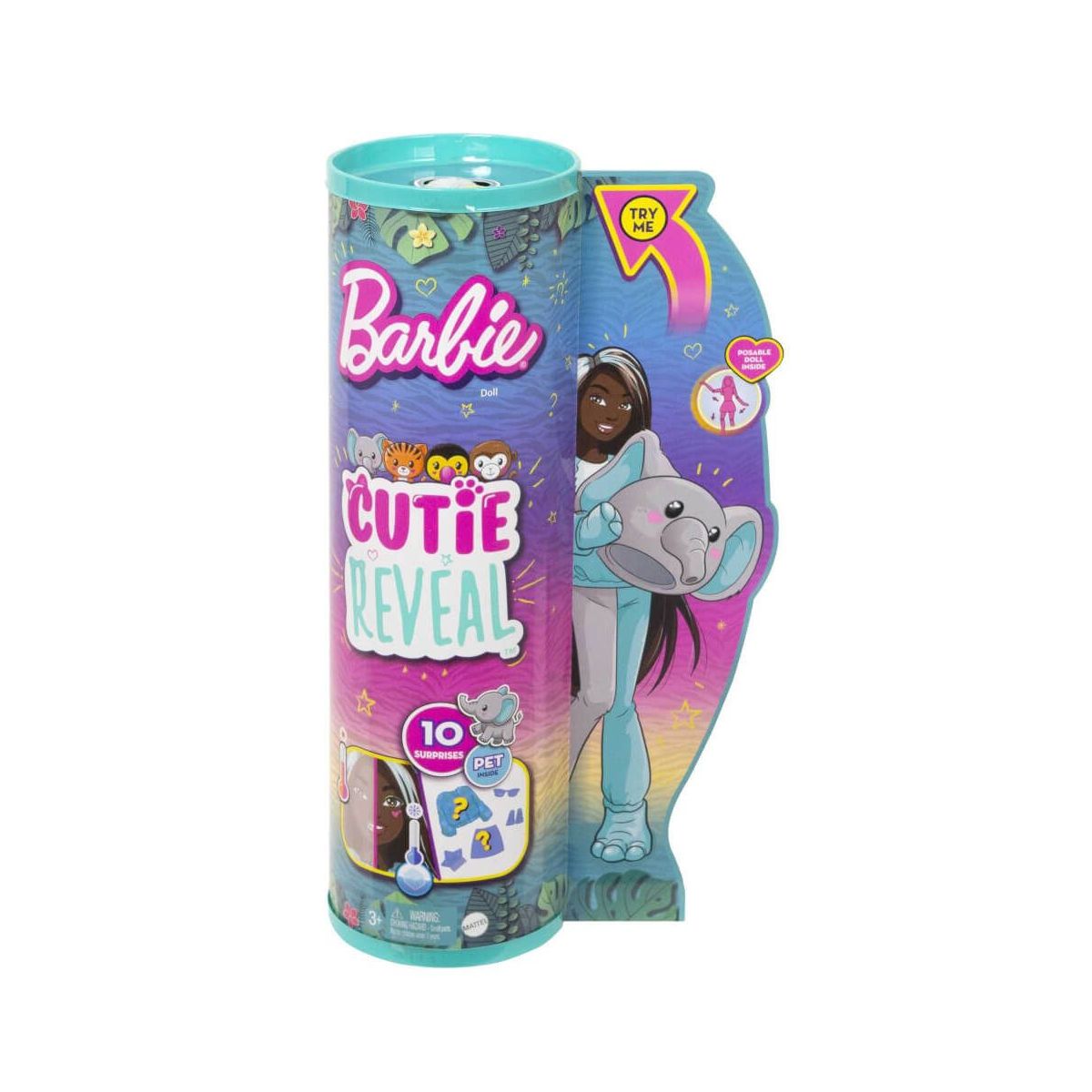 Bei den Barbie Cutie Reveal-Puppen der Dschungel-Reihe ist schon das Auspacken ein besonderes Erlebnis. Außerdem begeistert die Puppe mit 10 Überraschungen. Einen charmanten Elefanten, liebenswerten Tiger, wunderschönen Tukan oder frechen Affen auswählen und dann das Plüschkostüm abnehmen, um eine bewegliche Barbie-Puppe mit langen, bunten Haaren zu entdecken. Welche Puppe kommt zum Vorschein? Auf dem Gesicht jeder Barbie-Puppe befinden sich hübsche Details, die dem niedlichen Look etwas Besonderes verleihen. Weitere Überraschungen umfassen etwa eine Sonnenbrille, einen Rock oder Shorts und ein Mini-Haustier, das zum Kostüm der Puppe passt. Einfach umdrehen und schon wird aus dem Plüschoberteil eine Fleece-Jacke und aus dem Kostümkopf ein Bett für das Haustier. Eiskaltes Wasser löst den Farbwechseleffekt auf der Puppe und dem Mini-Haustier aus. Mit warmem Wasser nehmen Puppe und Mini-Haustier wieder die ursprüngliche Farbe an. So ist stundenlanger Spielspaß garantiert. Die Barbie Cutie Reveal Dschungel-Serie bietet Kindern viele niedliche Überraschungen. Mit Puppe im Tierkostüm und 10 Überraschungen. Alle Puppen separat erhältlich. Die Puppen können nicht von allein stehen. Abweichungen in Farbe und Gestaltung vorbehalten..
