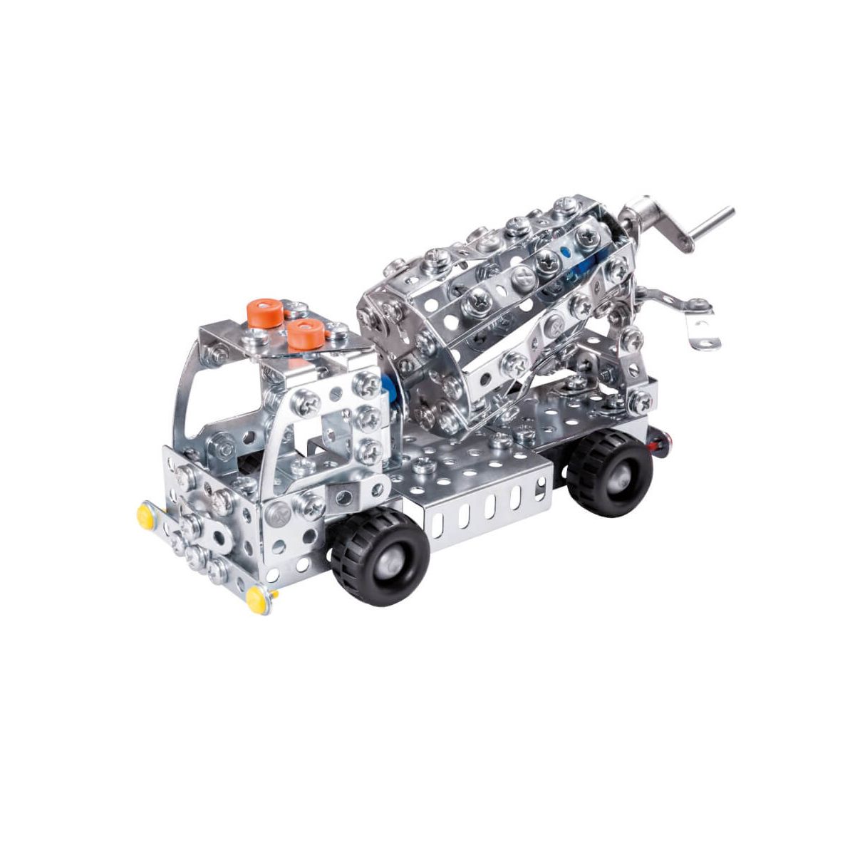 Mit dem eitech LKW Betonmischer geht es ab auf die Baustelle! Rutschfeste Profilreifen sorgen für optimale Rolleigenschaften des Baustellenfahrzeugs und die drehbare Mischtrommel garantiert fantasievolle Abenteuer auch nach der Montage. Rollenspiele fördern die Kreativität. Aus diesem Grund ist in der Fahrerkabine Platz für Spielzeugfiguren mit einer Größe bis zu 4,5 cm (nicht mitgeliefert). Der Metallbaukasten C282 wird mit 340 Bauteilen geliefert und fördert die motorischen Fähigkeiten und das räumliche Denken Ihres Kindes. Beim Aufbau werden sowohl Geduld als auch die Hand-Augen-Koordination trainiert. Metallbaukästen von eitech sind daher anerkanntes Lehrmaterial an Schulen und werden im Unterricht eingesetzt. Made in Germany heißt es für alle unsere eitech® Produkte. Sämtliche Metallbaukästen werden im thüringischen Pfaffschwende konstruiert und produziert..
