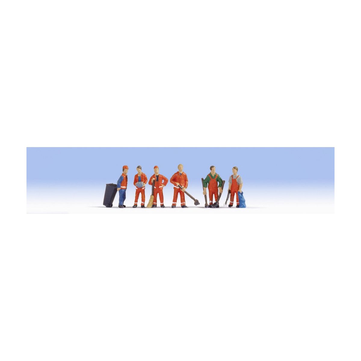 Straßenreiniger bei der Arbeit.Das Set enthält sechs Straßenreiniger im Einsatz.Die sechs handbemalten Figuren im Set führen verschiedene Tätigkeiten aus. Vier Figuren kümmern sich um das Säubern von öffentlichen Straßen und Wegen sowie Plätzen und Parkanlagen. Zwei Figuren leeren Abfallbehälter und entsorgen den Abfall fachgerecht. Die realistisch handbemalten Modellfiguren sind im Maßstab 1:87 (Spur H0, ca. 2 cm hoch) ausgeführt und perfekt für die Dekoration von Modellbahnanlagen und für die Ausgestaltung von Dioramen geeignet..