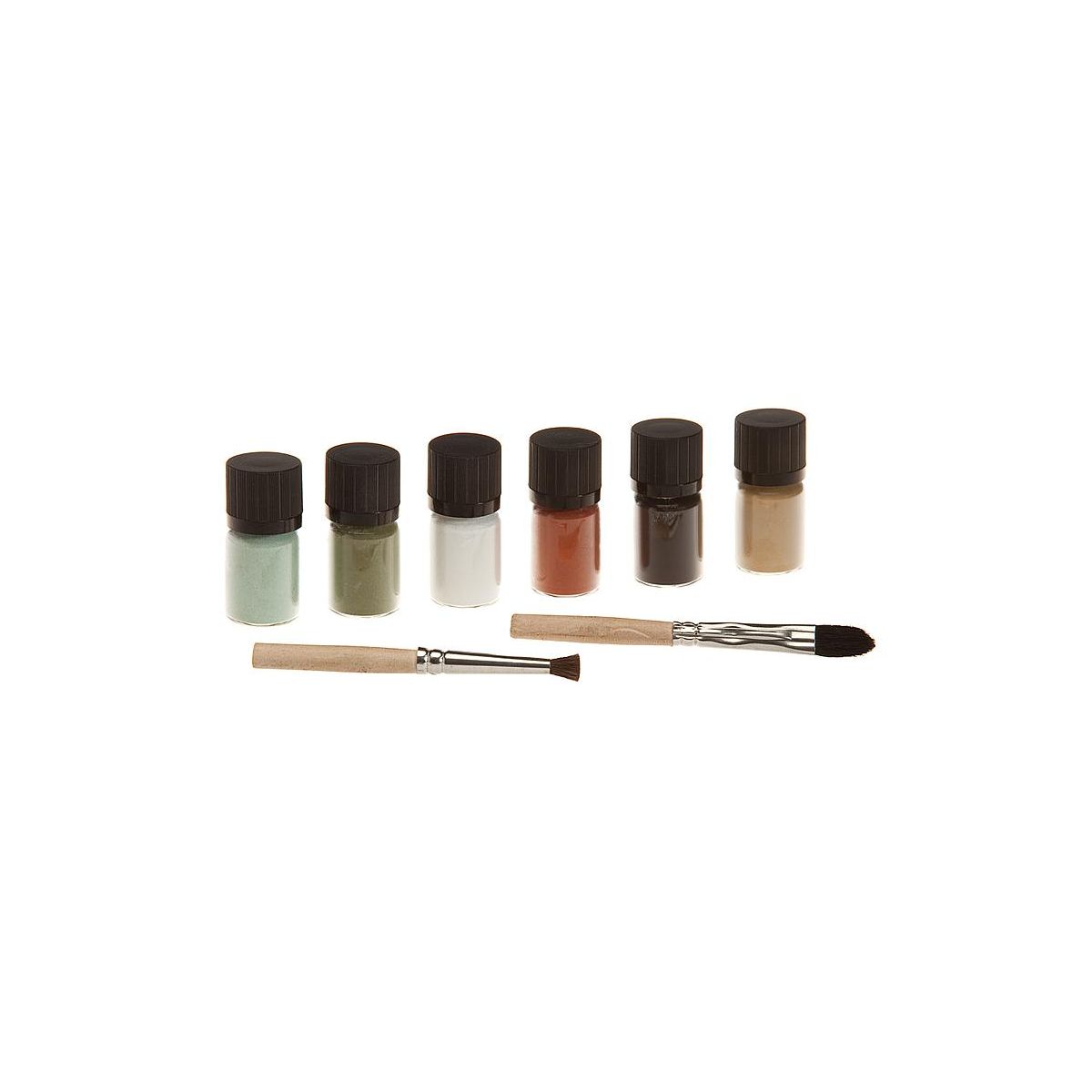 Herstellungsbedingt weisen Kunststoffbausatzteile einen minimalen Glanz auf, werden meist einfarbig gespritzt. Mit dem Patina-Set lassen sich naturgetreu und gezielt Verwitterungs- und Alterungsspuren setzen. Einrichtungen der Industrie oder solche im Dampflok-BW sind immer stärker verschmutzt als ein Einfamilienhaus im Grünen oder ein gepflegtes Stadthaus.Das Set enthält 6 Fläschchen mit matten Farbpigmenten (Schwarz: 8 g, Weiss: 6 g, Rost: 8 g, Moos: 7 g, Sand: 5 g, Grünspan: 6 g) die direkt oder gemischt in unzähligen Farbnuancen mit den beigefügten Spezialpinseln aufgetragen werden. Ideal zum Patinieren von Gebäudemodellen, Brücken- und Stahlkonstruktionen, Rollendem Material aber auch Schiffs- und Militärbausätzen..