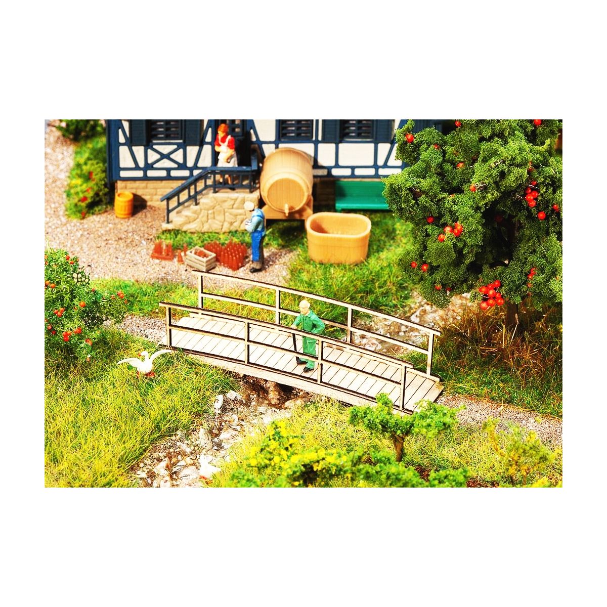 Lasercut-Modell einer gebogenen Teich- und Gartenbrücke aus Holz..
