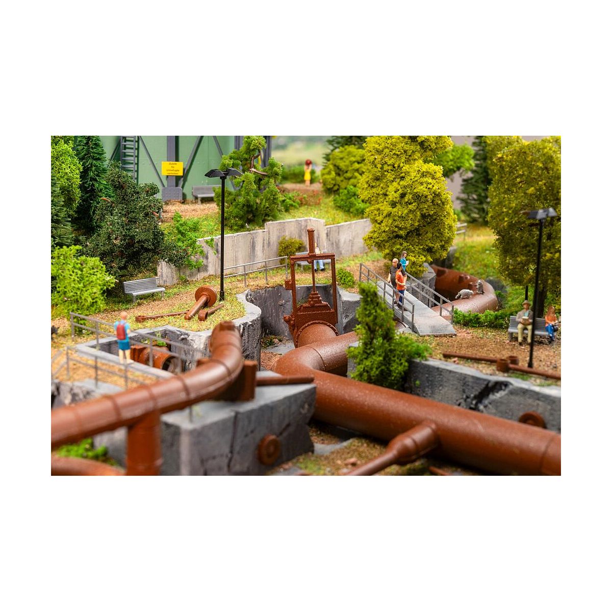 Mit diesem vielseitigen Rohrleitungs-Set wird die Gestaltung einer realistischen Schwerindustrielandschaft zum Kinderspiel! Unterschiedlich lange, gerade und gebogene Rohrleitungen in verschiedenen Durchmessern ermöglichen es Ihnen, im Handumdrehen ein authentisches Rohrsystem in Ihrer Miniaturwelt zu erschaffen. Die frei kombinierbaren Teile bieten unzählige Möglichkeiten und lassen sich zudem perfekt mit dem »Rohrleitungs-Set« (Art. 180327) und dem Set »Gasometer mit Rohrleitungen« (Art. 130157) erweitern. So entsteht eine beeindruckende Industrieanlage, die Ihre Modelllandschaft bereichert!.