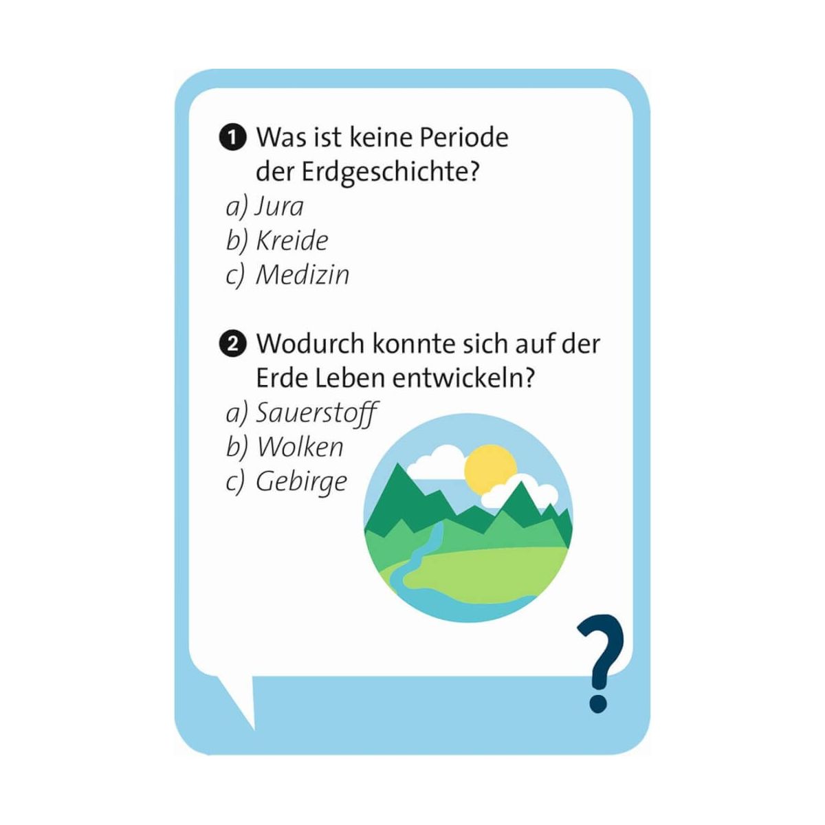 Jetzt gibt es unseren Klassiker auch endlich für die junge Generation! Das Pocket Quiz Junior bietet spannende Inhalte für Kinder, mit denen sich jede Wartezeit perfekt überbrücken lässt. Ellenlange, langweilige Autofahrten? Warten an der Bushaltestelle nach der Schule? Die Kinderquizze sorgen dank interessanter Themen, kniffligen Fragen und modernem Design für die nötige Ablenkung und lassen die Zeit wie im Flug vergehen. Jedes Quiz besteht aus 50 Karten, pickepackevoll mit abwechslungsreichen, kniffligen Quizfragen, Rätseln, Knobeleien und Denksportaufgaben. Dank der attraktiven Geschenkverpackung im Mitnahmeformat ist das Pocket Quiz Junior das perfekte Mitbringsel zum Geburtstag auch für Zwischendurch. Zu kompaktem Wissen für unterwegs kann doch niemand nein sagen. So wird’s gespielt: Feste Spielregeln gibt es keine. Man kann die Fragen alleine beantworten und die Lösung auf der Rückseite der Karte kontrollieren. Oder man spielt im Team und stellt sich die Fragen gegenseitig. Pocket Quiz Junior „Erde Wie viel wiegt die Erde? Wie heißt die älteste bestehende Republik der Welt? Und wo fragt man zur Begrüßung wortwörtlich „Hast du heute schon Reis gegessen? Mit diesen 100 Fragen zu Geographie, Geschichte, Kultur und Astronomie reist man einmal um die Erde – und kann dabei sein Wissen über die Geheimnisse unseres erstaunlichen Planeten testen. Text: Jürgen Winzer + 50 Karten in einer Schachtel + ab 8 Jahren.