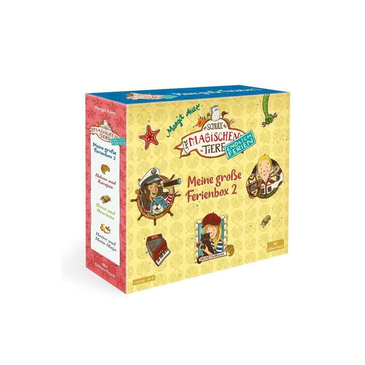 Für Fans und Sparfüchse. Längst kein Geheimnis mehr ist der Erfolg der allseits beliebten Reihe, deren Bände 4 – 6 diese Geschenkausgabe enthält. Ein brillanter Hörspaß für alle Fans!Juhu! In der Schule der magischen Tiere heißt es: Endlich Ferien! Die magischen Tiere packen ihre Koffer – und das Abenteuer beginnt!Helene und Karajan: Helene hat eine Reise zu einer Modenschau gewonnen! Nach Paris – in Kater Karajans alter Heimat! Doch dann läuft nichts wie geplant: Helene landet im Dreibettzimmer statt im Luxushotel und die anderen Mädchen sind total eingebildet. Einfach schröcklisch, findet der magische Kater. Die zwei sind sich einig: Nix wie weg hier! Ein Glück, dass Karajan sich so gut auskennt in der Stadt …Benni und Henrietta: Eine Woche schulfrei! Benni genießt das Faulenzen – bis Onkel Johnnie kommt. Der will mit Benni auf ein Rockfestival, mit dem Motorrad! Henrietta, Bennis magische Schildkröte, ist begeistert. Doch schnell wird das Festival für die beiden zur Mutprobe. Und dann tauchen auch noch seltsame Lichter am Himmel auf. Grün wie Ufos … Gut, dass Benni seine Henrietta dabei hat. Sie liebt Abenteuer!Hatice und Mette-Maja: Auf nach Dänemark! Hatice jubelt: Endlich kann sie mit ihren Brüdern Meeresforscherin spielen. Und vor allem: mit ihrer Robbe Mette-Maja in den Fluten toben! Doch dann kommt alles anders – denn Hatice und Mette-Maja finden eine Schatzkarte. Eine aufregende Suche beginnt..