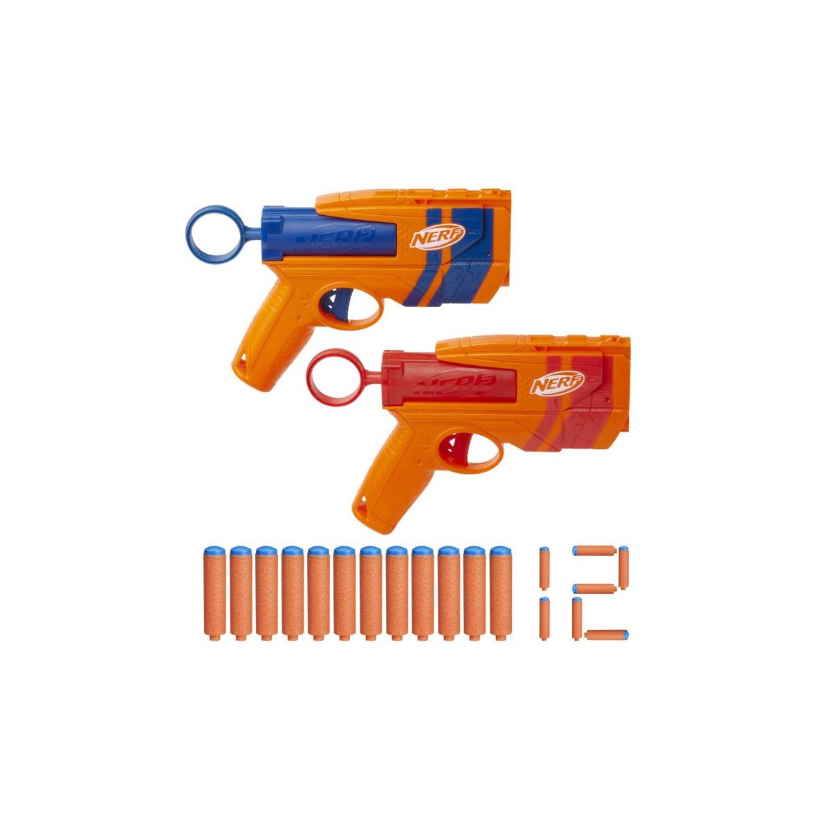 Mit den High-Performance Dart-Blastern aus der Nerf N Series und Nerf N1 Darts bringt die Marke Nerf das Battle auf das nächste Level. Sind Erfahrungen als Nerf Spieler bereits vorhanden? Dann bieten die Blaster und Darts beim Indoor- und Outdoor-Battle den entscheidenden Vorteil. Von den Entwicklern des Schaumstoffdarts entfesselt die Marke Nerf die nächste Revolution beim Dart-Blasting, denn die Nerf N Series N1 Darts liefern EXTREME TREFFGENAUIGKEIT, GESCHWINDIGKEIT und REICHWEITE! Der Nerf N Series Duo Pack enthält 2 Blaster für doppelte Dart-Action! Die kompakten Blaster sind perfekt, um sich schnell in Nerf-Battles zu bewegen und rasant zu agieren. Sie bieten Kapazität für 2 Darts, Ziehgriff, und eine Tactical Rail Steckschiene. Der Nerf N Series Duo Pack enthält 12 Nerf N1 Schaumstoffdarts, und bietet somit zusätzliche Darts zum Nachladen. Nerf N Series Blaster sind nur mit Nerf N1 Darts kompatibel. Eine Brille wird empfohlen (nicht enthalten). NERF und HASBRO sowie alle dazugehörigen Marken und Logos sind Marken von Hasbro, Inc..