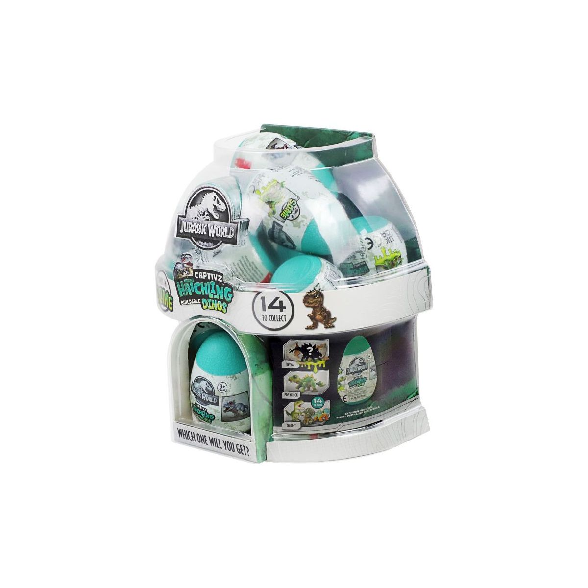 Du liebst Überraschungen? Die kleinen Hatchlings aus der Jurassic World Captivz Serie, sind bereit mit Dir die große Welt zu erobern. Sei gespannt, wenn die niedlichen und detailreichen Baby-Dinos schon bald aus dem schleimigen Inneren ihrer Eier schlüpfen und zum Leben erwachen. Welchen Baby Dino wirst du ausbrüten? In jedem Ei befindet sich eine außergewöhnliche Dinosaurierart und jede Figur wird eine besondere Eigenschaft haben, die einzigartig für ihre Art ist. Und das großartige daran, die Dinos können auch nach dem Spielen in ihren Eiern aufbewahrt werden.Es gibt 14 wilde Jungtiere zum Sammeln! Wirst du die 2 super seltenen Reptilien finden? Jedes Ei enthält: 1x Pop-n'-Lock-Dinosaurier zum Zusammenbauen, 50 g fluffigen, grünen Schleim, 1x Sammler Token, 1x Sammelheft