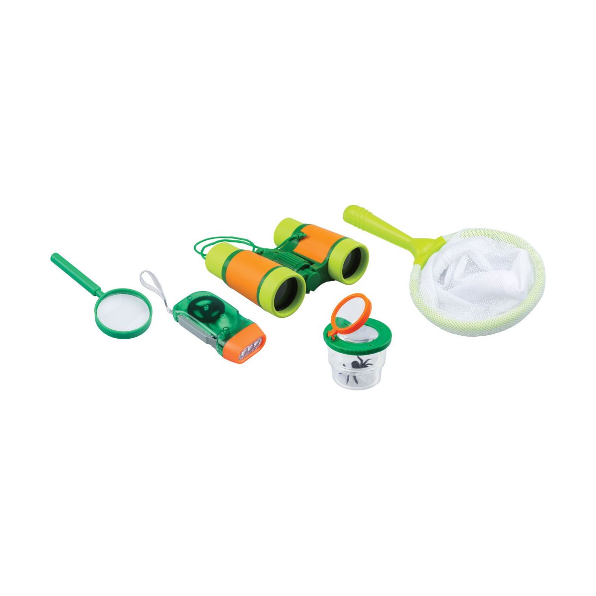 Mit dem 5-teiligen Outdoor active Expeditions-Set ist man immer gut ausgerüstet um auf Entdeckungsreise zu gehen. Das Set beinhaltet ein Fernglas, einen kleinen Kescher, eine Box mit Vergrößerungsglas, eine Lupe und eine Taschenlampe. Inklusive 3xAG10 Batterien. Für Kinder ab 3 Jahren..