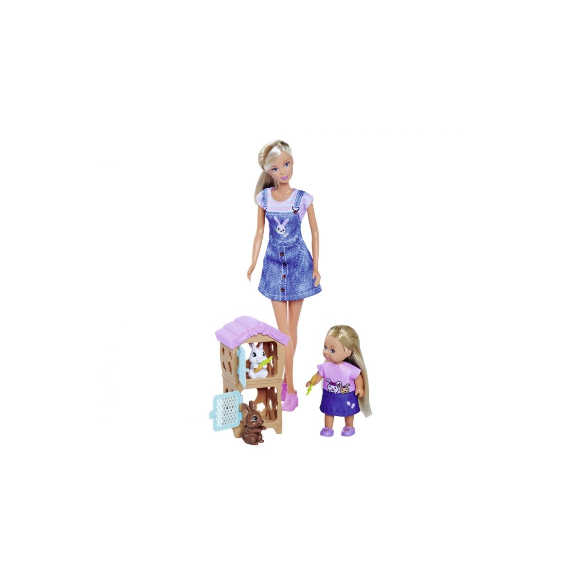 • Ankleidepuppe - Steffi LOVE ist eine echte Modepuppe. Sie liebt schicke Klamotten, trendige Frisuren, ihre kleine Schwester Evi und natürlich ihren Freund Kevin. Mädchen und Jungs können ihre Puppe in den aktuellen Modetrends stylen und kleiden. • Tierpflege-Spaß – Steffi und ihre Schwester Evi kümmern sich um zwei süße Hasen, die in einem zweistöckigen Hasenstall Platz finden. Die Hasen können von ihnen mit Karotten versorgt werden. • Zwei Puppen - im Set ist eine 29cm große Steffi LOVE und eine 12cm große Evi LOVE Puppe enthalten. Beide Puppen tragen ein Kleid mit unterschiedlichem Häschenaufdruck. • Altersempfehlung - das Steffi LOVE Set Rabbit Family ist für Kinder ab 3 Jahren geeignet. • Simba - Elefantenstarker Spielspaß! Im Zentrum der Produktentwicklung steht die Begeisterung der Kinder. Für Jungen und Mädchen, Klein und Groß. Kinder sollen Spaß haben und gefördert werden.