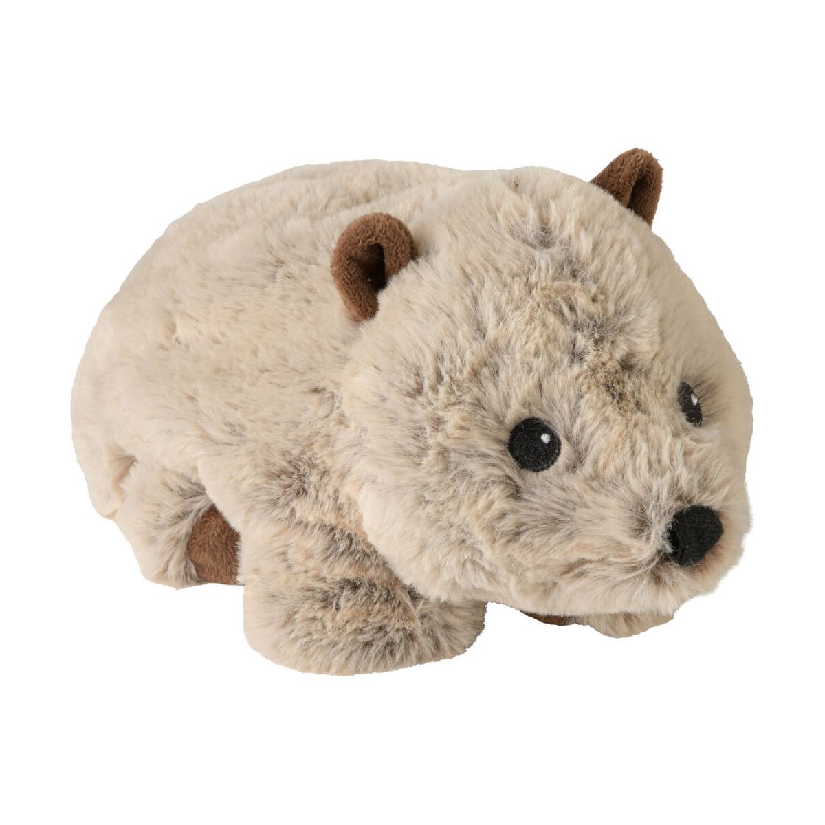 Das flauschige Beuteltier ist ein ganz fleißiger Baumeister: Mit großem Talent gräbt der knuffige Wombat kunstvolle Höhlen, in denen er sich am liebsten tagsüber ausruht. Nach seiner langen Reise aus Down Under möchte er das nun am liebsten bei Dir auf dem Bauch tun, wo er über Deine Träume wacht und sich mit seinem samtig weichem Fell an Dich schmiegt. Erwärmung 90 Sekunden in der Mikrowelle bei max. 800 Watt| Hülle: 100% Polyester, Füllung: Lavendel-Hirse-Mischung, Füllung ist nicht herausnehmbar