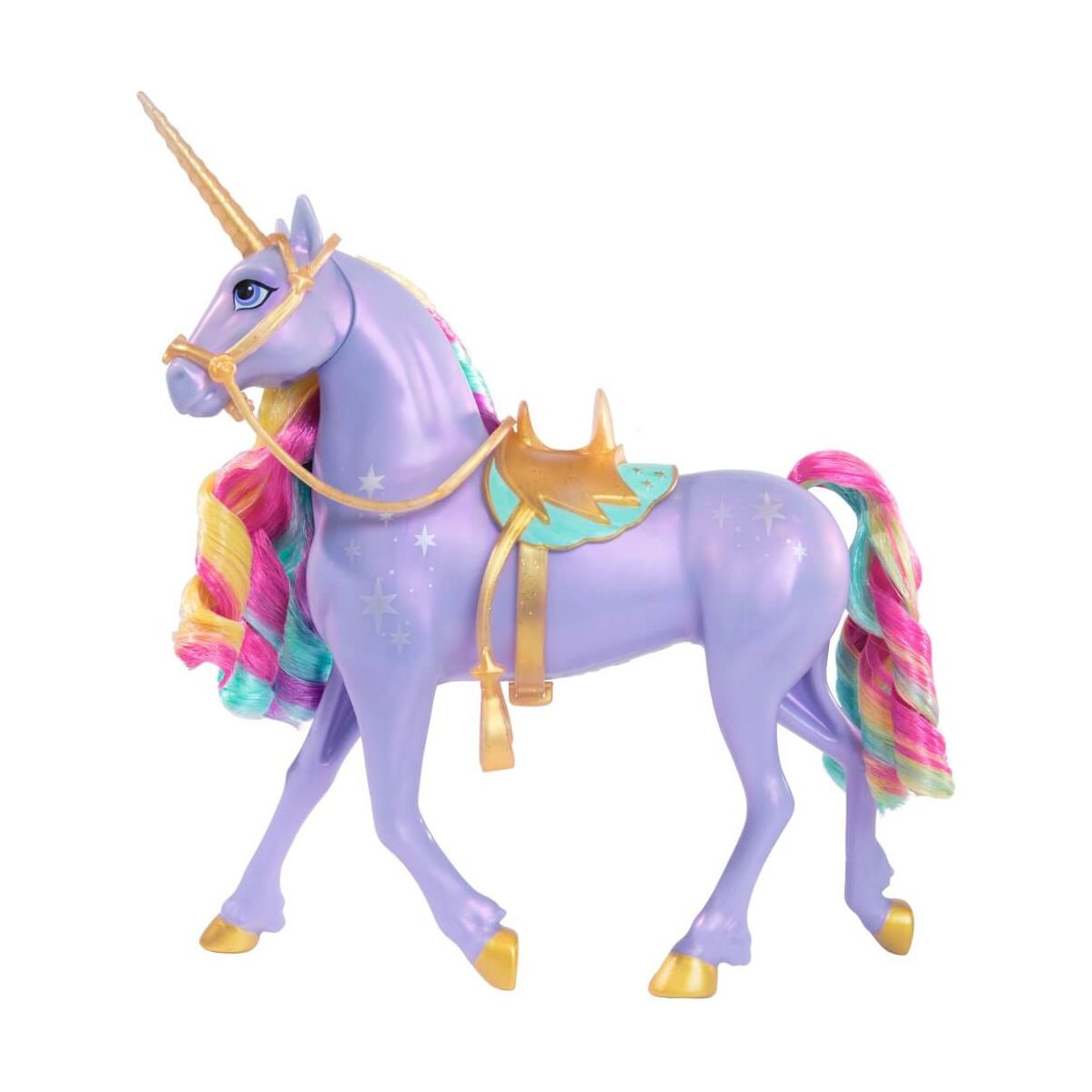 In der beliebten Netflix-Serie Unicorn Academy, die auf einer Einhorn-Insel weit hinter den blauen Meeren spielt, dreht sich alles um Freundschaft, Vertrauen, Stärken und Schwächen und wie man nur gemeinsam den Kampf gegen das Böse gewinnen kann. Als erstes müssen die neuen Schülerinnen und Schüler ihr seelenverwandtes Einhorn finden und mit ihm eine besondere Verbindung eingehen. Das heißt, eigentlich finden nicht die Teenager ihr Einhorn, sondern die zauberhaften Flirrfeen ordnen ihnen diese zu, was für manche Überraschung sorgt und nicht immer gleich Liebe auf den ersten Blick ist. Bei Heldin Sophia und ihrem Einhorn Wildstar dauert es ziemlich lange, bis der Funke überspringt, sie sich gegenseitig vertrauen können und so Wildstars Zauberkraft, die Licht-Magie, entfesselt wird. Dieser Prozess der Annäherung wird mit Licht-Magie Wildstar als liebevoll gestaltetem Einhorn mit schimmernder Mähne und Schweif im Kinderzimmer lebendig. Nach Interaktionen wie Streicheln und am Zügel ziehen, was von Hufgetrappel begleitet wird, beginnt Wildstar sanft in Regenbogenfarben zu leuchten, bis sie nach Berührung des Horn hell erstrahlt und den Titelsong ''Hör auf dein Herz'', wahlweise auf Deutsch, Englisch oder Französisch spielt. Jetzt besteht eine magische Verbindung zwischen Reiterin und Einhorn und Wildstar kann ihre Licht-Magie voll entfalten, ein Verteidigungslicht schleudern oder den Weg leuchten. Mit Licht-Magie Wildstar können die Schlüsselszenen aus der Serie mit Sophia als Ankleidepuppe (separat erhältlich) immer wieder nachgespielt werden..