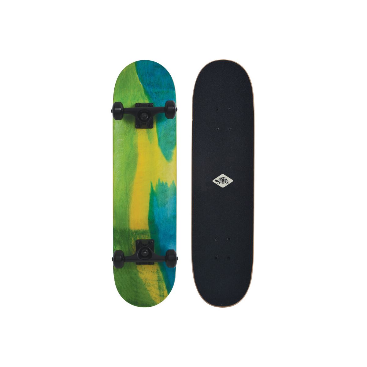 Das neue Top-Board aus der Schildkröt Skateboard-Line verspricht einzigartigen Fahrspaß! Das Board ist mit einem 31 Zoll Deck (79 x 20cm) aus 7-fach verleimten North-East Premium-Ahorn Holz ausgestattet. Es verfügt über ein Doppel-Kick Deck mit einer leichten Wölbung nach innen (konkav). Das Griptape sorgt für sicheren und rutschfesten Stand während der Fahrt. Auf der Unterseite des Decks befindet sich ein hochwertiges Heat-Transfer Design. Durch das spezielle Verfahren beim Auftragen des „Splash Designs auf das Deck wird kein Board wie das andere. Designabweichungen sind hier absolut gewollt und machen jedes Board zum unverwechselbaren Einzelstück. Das Skateboard ist mit pulverbeschichtete 5V Trucks aus gehärtetem Aluminium ausgestattet. Die PU-Rollen (Härtegrad 92A, Größe: 54 x 36mm) sind mit ABEC9-Kugellagern versehen und bereits komplett einsatzbereit montiert. Außerdem verbaut sind schwarze Hi-Elastic Bushings und 4mm PE Riser Pads. Mit 2,2kg ist das Board leichter als unsere Bestandsmodelle und weist eine Belastbarkeit von 100kg auf. Die über 100 Jahre alte deutsche Marke Schildkröt gilt als Erfinder des Tischtennisballs. Heute bietet Schildkröt neben Tischtennis auch eine sehr umfangreiche Funsports- und Funwheel Kollektion an und gilt als Marktführer in diesem Bereich. Die Produktentwicklung erfolgt ausnahmslos in Deutschland. Die weltweiten Produktionsstätten werden streng überwacht und genügen höchsten Sozialstandards. Warnhinweise: ACHTUNG: vor Benutzung Gebrauchsanleitung lesen und beachten / nur mit geeigneter Schutzausrüstung benutzen / Nicht im Straßenverkehr verwenden / Benutzung nur durch eine Person / die Aufsicht durch einen Erwachsenen wird dringend empfohlen / Skateboard gemäß EN 13613:2009, Klasse A / Maximales Nutzergewicht: 100kg / Altersempfehlung: 8+. Der neue Bigflip 31 ist das neue Top-Board der Schildkröt Skateboard-Line Wertiges konkaves Deck (79x20cm) aus 7-fach verleimten North-East Premium-Ahorn Doppel-Kick, Premium-Griptape und hochwertiges Heat-Transfer Design PU Rollen 53x31mm (Härtegrad 92A) mit ABEC9-Kugellagern und pulverbeschichtete 5V Trucks aus gehärtetem Aluminium Schwarze Hi-Elastic Bushings, 4mm PE Riser Pad, Gewicht 2,2kg, max. Belastung 100kg.