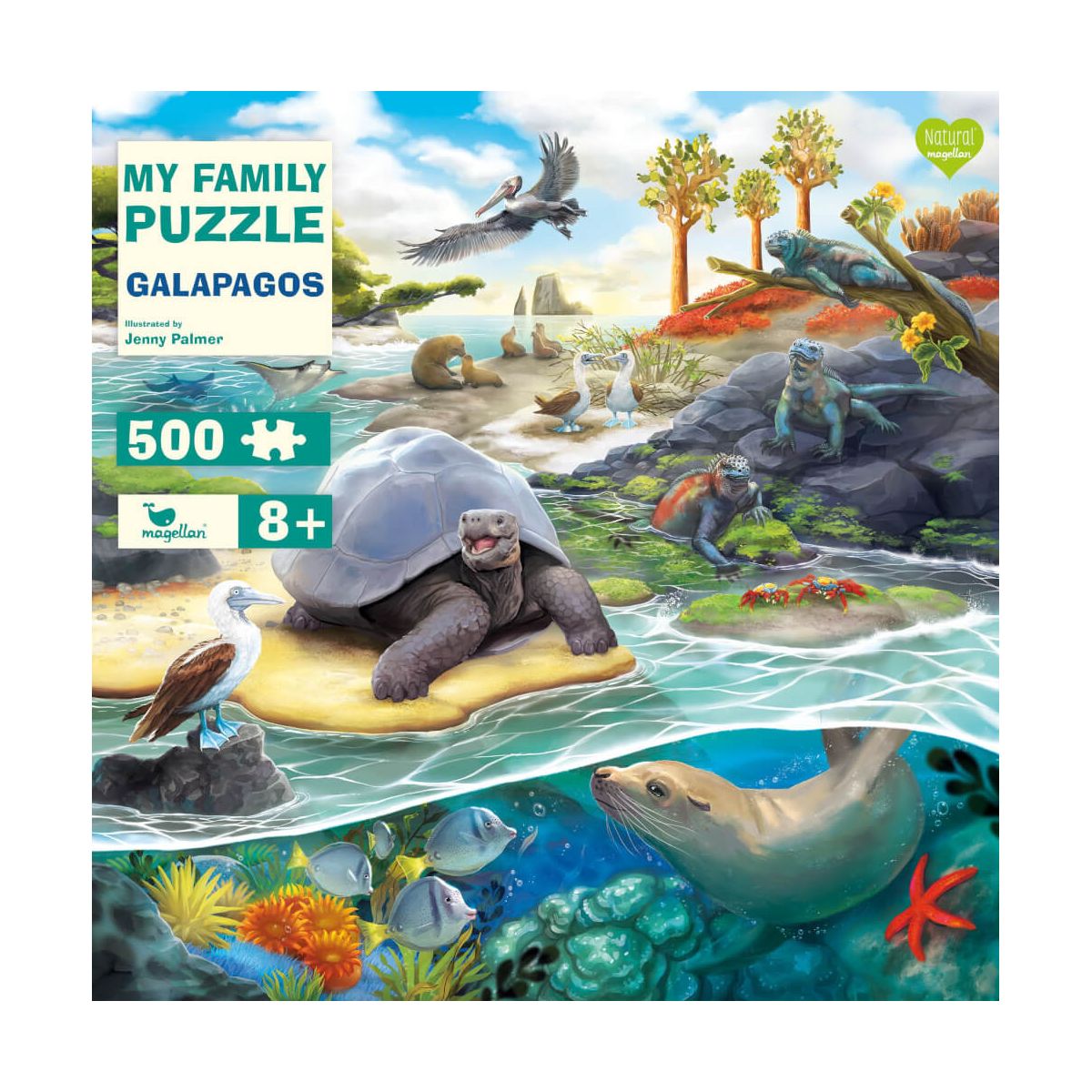 Exotischer Puzzlespaß mit 500 Teilen für Kinder und Erwachsene. Entdecke den traumhaften Strand von San Cristóbal, wo sich Riesenschildkröten, Iguanas und Seelöwen tummeln. Wenn alle 500 Puzzleteile zusammengefügt werden, eröffnet sich für den Betrachter die Galapagos-Insel mit ihrer tierischen Vielfalt. Das Puzzle trainiert Konzentration und Feinmotorik und bietet Puzzlespaß für Kinder ab 8 Jahren und die ganze Familie. Der neue Titel der My-Family-Puzzle-Reihe bietet Einblick in diese einmalige Flora und Fauna.