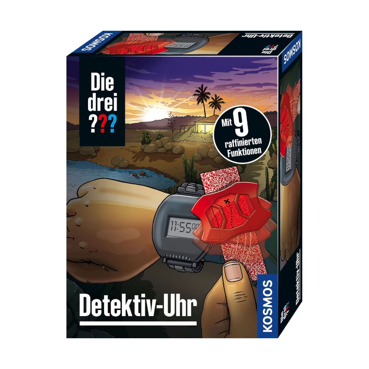 Geheimes Treffen im Park in 20 Minuten? Wie lange könnte der Verdächtige von A nach B gebraucht haben? Alarm! Eine Uhr, neun Funktionen: Zunächst Uhrzeit und Datum einstellen, die Zeitzone bestimmen, Wecker und Stoppuhr testen. Enthalten sind zudem eine Rotfolie, um Geheimschrift zu entziffern, eine Lupe, ein Block für geheime Nachrichten, eine Taschenlampe, Geheimkapseln für Botschaften sowie eine Alarmanlage mit Erschütterungssensor. Schritt für Schritt erklärt die illustrierte Anleitung, wie die coolen Funktionen eingesetzt werden. Bereit für den nächsten Fall? Kinder ab 8 Jahren stürzen sich wie die drei ??? Justus, Peter und Bob ins nächste Abenteuer!.
