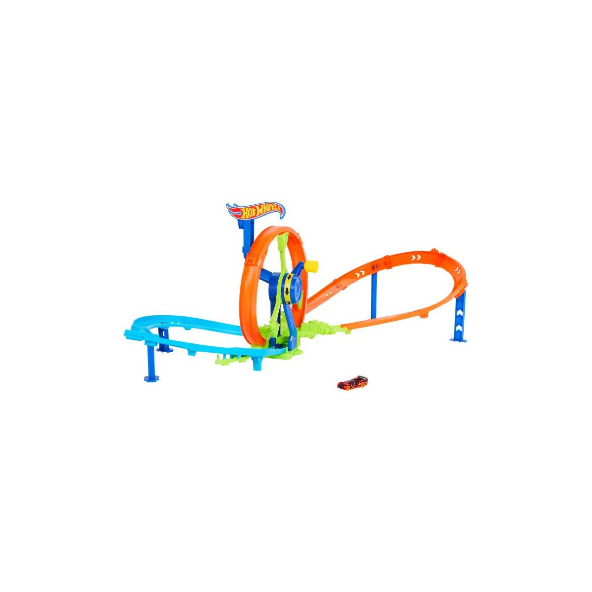 Das Hot Wheels Schnellstart- und Looping-Spielset verfügt über ein Rad mit Kurbel, das Autos immer wieder durch einen Looping, um Kurven und in eine Crashzone schleudert. Für noch mehr Spielspaß können weitere Fahrzeuge hinzugefügt werden, die versuchen, dem Looping-Kicker und anderen Autos in der Crash-Zone auszuweichen. (Ein Hot Wheels Fahrzeug enthalten. Zusätzliche Fahrzeuge separat erhältlich.) Das Set verfügt über einen Griff und lässt sich in der Mitte zusammenklappen, um es bequem zu transportieren und aufzubewahren. Ab 4 Jahren..