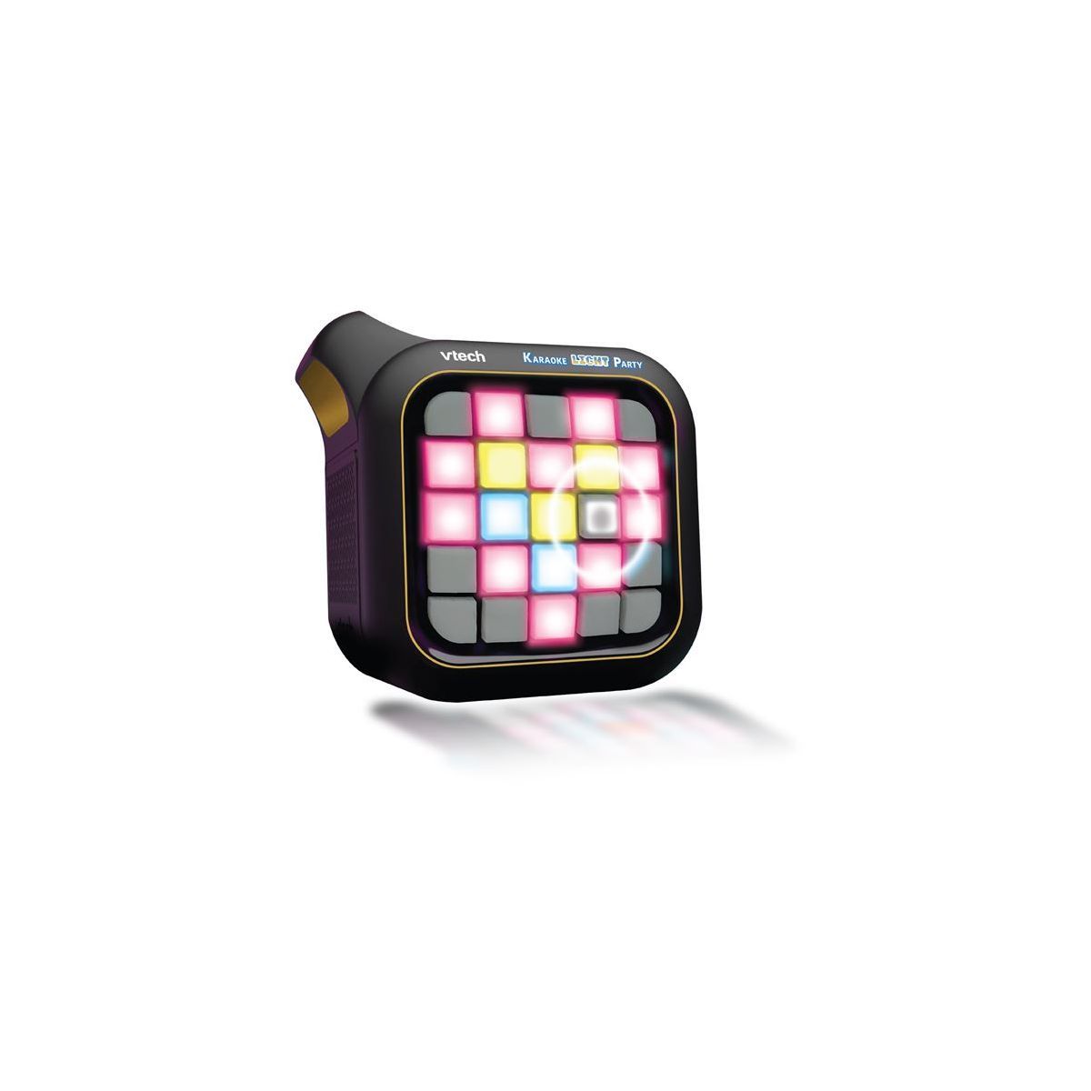 Zum Star der Karaoke-Show werden und in die Welt der Musik eintauchen! Diese coole Karaokemaschine inklusive 2 kabellosen Mikrofonen bringt Leben in jede Party! Faszinierende Lichtshow mit 5x5 magischen Leuchttasten und RGB-Lichtern für ein interaktives Erlebnis. Die Mikrofone haben jeweils 4 Soundeffekt-Tasten für coole Stimmeffekte wie Vibrato, Chorus oder lustige Pitch-Effekte (hoch, tief, Roboter) und Duett. 40-Watt-Lautsprecher: Satter Sound für kraftvolle Beats und glasklare Stimmen. 5 Modi und 13 Aktivitäten (Stimmbildung, Singen lernen, Musikmodus, Pixel Art Creator u. v. m.!). Pixel Art Creator: 25 magische Leuchttasten zum Kreieren von Pixelgrafiken, die im Rhythmus leuchten. Schnelle Auswahl mehrerer Leuchttasten ermöglicht das gleichzeitige Ändern der Farbe aller ausgewählten Leuchttasten. 10 Melodien und 5 Lieder zum Aufwärmen der Stimme und zum Erlernen des Singens. 8 tolle Spiele (Ein-und Zweispielermodus). Magic Voice: Den Gesang aus Liedern entfernen und selbst singen. Kabellose Mikrofonverbindung über Bluetooth für maximale Bewegungsfreiheit. AC-Anschluss und 3,5mm Line-In für vielseitige Anschlussmöglichkeiten. Eingebauter Handyhalter und Tragegriff, um die kompakte Karaokemaschine überall hin mitzunehmen. Kindersicheres Batteriefach und Lautstärkeregler.