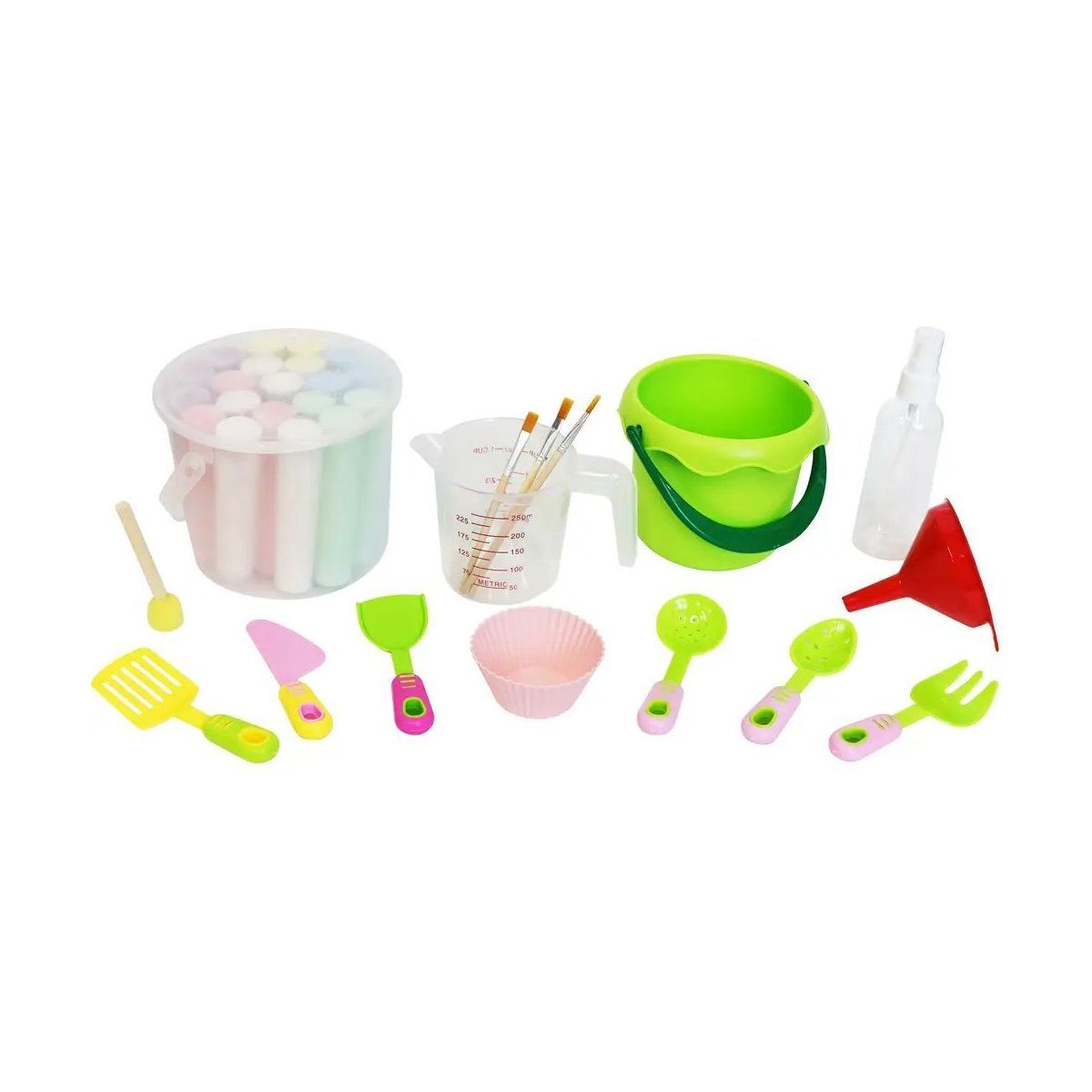 So wird jede Straße zur Leinwand. Perfekt für kleine Künstler. Zerdrücke die Kreide, vermische sie mit Wasser und lasse deiner Kreativität freien Lauf. Im Set enthalten ist eine Box mit 20 verschiedenen Kreidestücke, Eimer, Messbecher, Pinsel, Sprühfläschchen, Stempel, Trichter, Silikonförmchen und vier verschiedene Utensilien zum matschen und zerkleinern der Kreide. Die Kreide ist nicht glutenfrei. Für Kinder ab 24 Monaten..