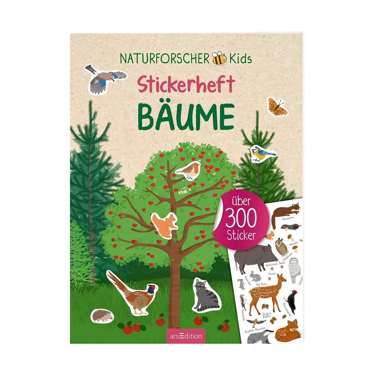 Stickerspaß für Naturfans! Entdecke mit diesem Stickerbuch die vielfältige Welt der Bäume vor unserer Haustür! Ob Obstbäume, Nadelbäume, Laubbäume, im Wald, im Garten oder am Wasser, in den Baumkronen oder unter der Erde: Mit über 300 Stickern kannst du die verschiedenen Szenen mit Insekten, Vögeln und Säugetieren zum Leben erwecken. • Tolle Bilder: Die unterschiedlichen Szenen sind toll illustriert und laden zum Stickern ein • Viele Sticker: In das Stickeralbum integriert sind Stickerbögen mit über 300 Aufklebern. Die Bögen sind perforiert zum leichten Heraustrennen • Lerneffekt: Egal ob Reh, Fuchs, Eichelhäher oder Waldmistkäfer – hier ist für jeden was dabei. Jedes Tier ist auf dem Stickerbogen benannt - ein toller Lerneffekt! • Stickerspaß für jede Gelegenheit: Das Stickerbuch ist ein ideales Geschenk für alle naturbegeisterten Kinder • Ab 4 Jahren: Mit diesem schönen Stickeralbum können sich schon Kinder ab 4 selbstständig beschäftigen – ganz ohne Hilfe von Erwachsenen. Kreativer Klebespaß! Das großformatige Stickeralbum bietet jede Menge Raum, der Fantasie freien Lauf zu lassen. Ein schönes Heft, mit dem sich schon 4-Jährige selbstständig beschäftigen können – ob unterwegs, im Kinderzimmer oder bei Oma und Opa.