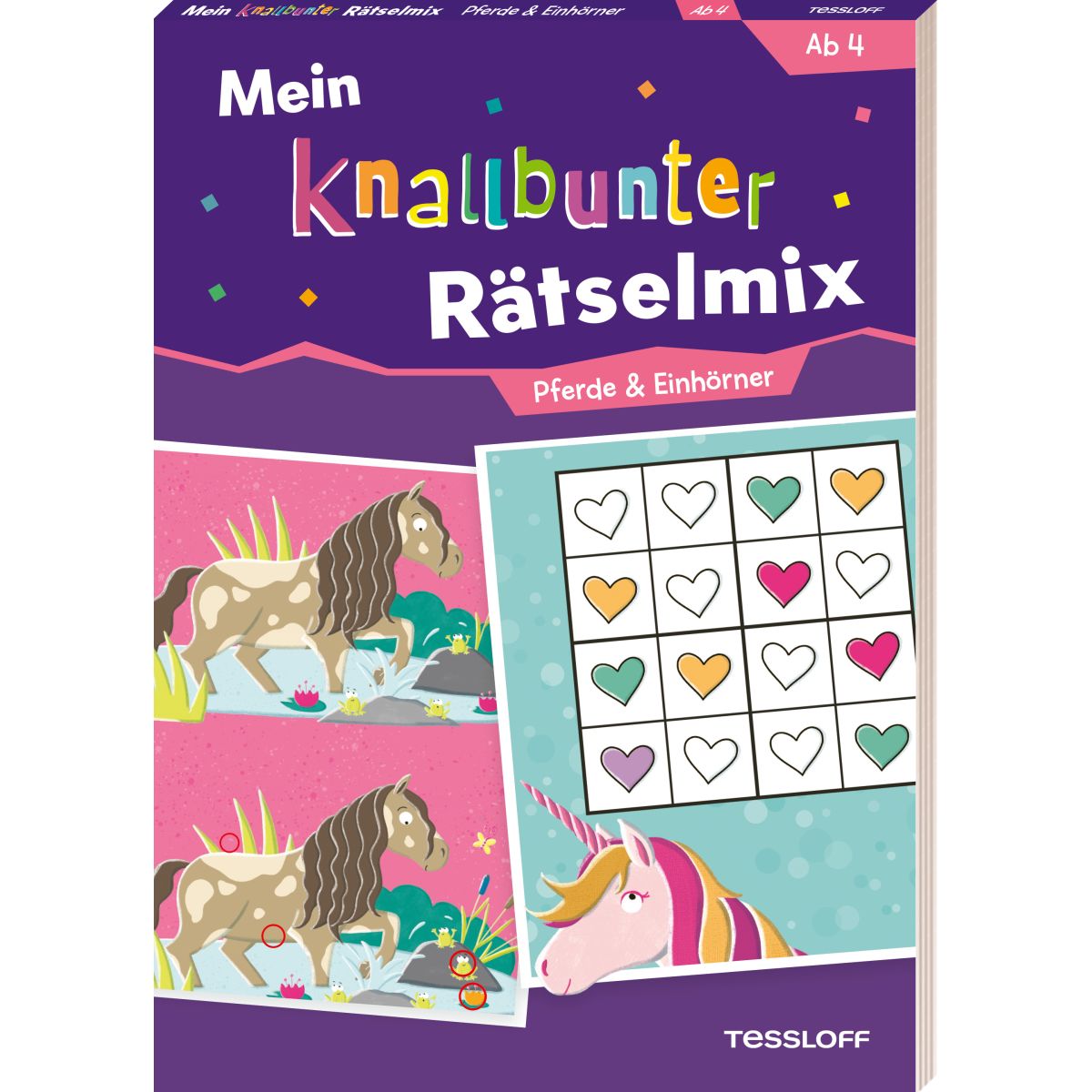 Rätseln, knobeln, entdecken – mit Pferden Einhörnern! Dieses bunte Rätselheft begeistert Kinder ab 6 Jahren mit 96 Seiten voller abwechslungsreicher Aufgaben. Viele verschiedene Rätselarten sorgen für stundenlangen Spaß: Sudoku, Labyrinthe, Finde den Unterschied, Malen nach Symbolen, Schatten zuordnen, Nachspuren, Zählen, Logikreihen und vieles mehr. Die Rätsel sind kindgerecht gestaltet und steigern sich von leicht bis knifflig – so bleibt die Motivation lange erhalten. Neben Spaß und Abwechslung fördert das Heft ganz nebenbei Konzentration, Geduld und logisches Denken. Ob als Geschenk für Pferde- und Einhornfans, als Beschäftigung für Reisen oder als kreative Alternative zum Bildschirm: Mit diesem Rätselmix erleben Kinder viele magische Knobelstunden!.