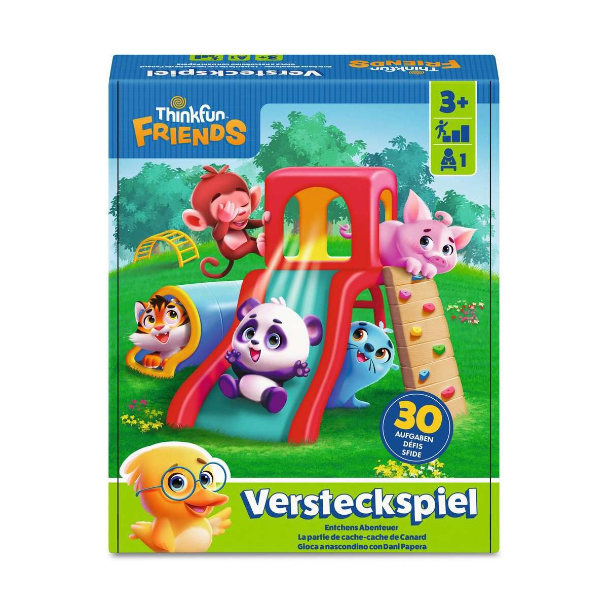 Mit Thinkfun Friends: Versteckspiel entdecken Kinder spielerisch die Welt des logischen Denkens. Gemeinsam mit Dani Duck und ihren Freunden lösen sie altersgerechte Herausforderungen, die das räumliche Vorstellungsvermögen und die Problemlösungsfähigkeit fördern.Durch das gezielte Platzieren von Spielplatzteilen lernen Kinder, Zusammenhänge zu erkennen und Lösungswege zu finden – ganz ohne Druck, aber mit viel Spaß!Ideal für kleine Entdecker, die Spaß am Denken haben!Die Thinkfun Friends verbringen ihre Tage in Puzzleville, wo sie spielen und gemeinsam Rätsel lösen. Jeder der Freunde hat eine besondere Denkfähigkeit, die ihnen wie eine Superkraft hilft. Zusammen sind sie großartig darin, jede Herausforderung zu meistern. In jedem Thinkfun Friends Spiel werden Kinder dazu eingeladen, mitzumachen, ihrer Fantasie freien Lauf zu lassen und gemeinsam mit den Thinkfun Friends zu üben. Durch Logik und Knobeleien überwinden sie alle Probleme, die ihnen begegnen.