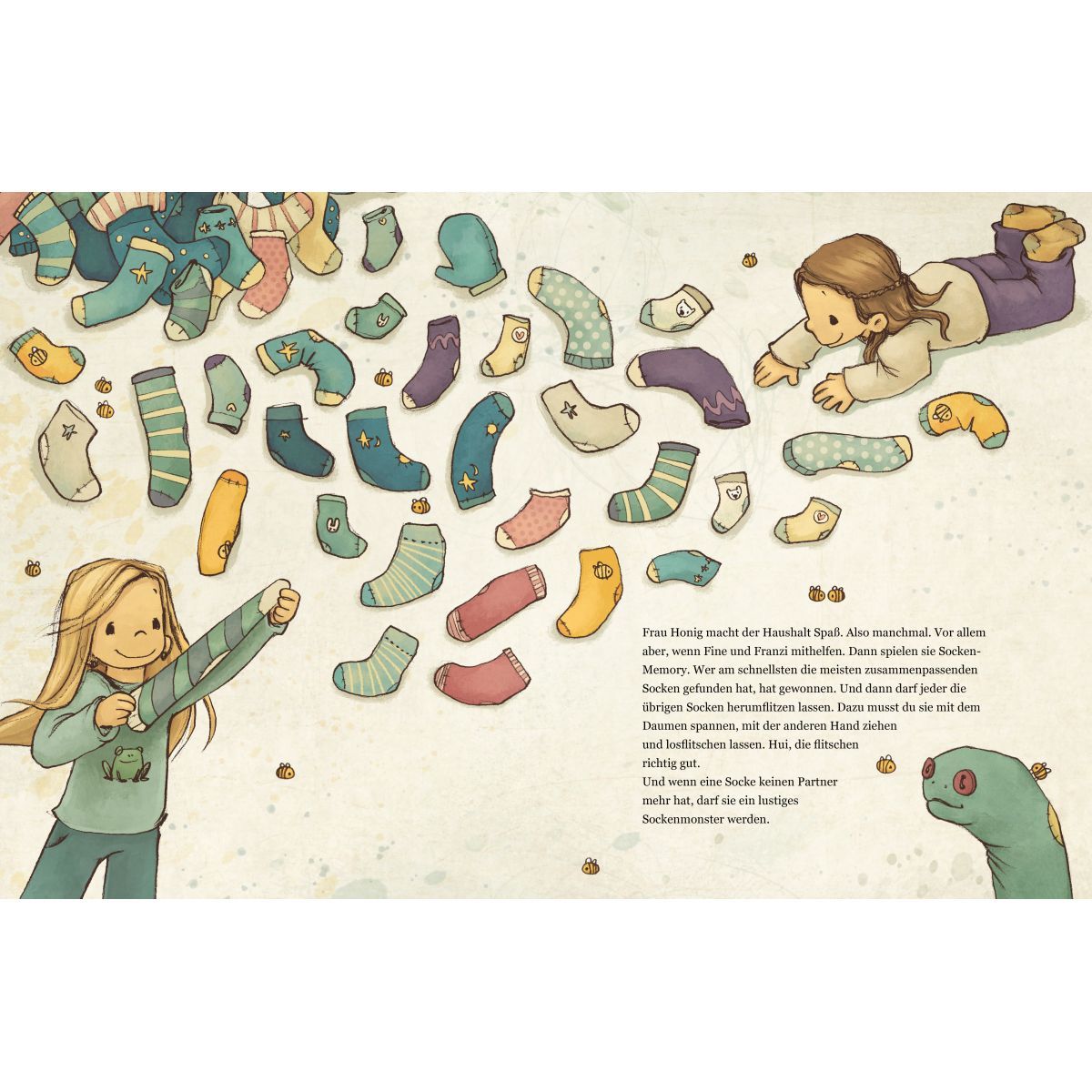 Wo Frau Honig ist, wird’s magisch! Ein Bilderbuch voller Zauber, Wärme und Fantasie – perfekt zum Vorlesen für Kinder ab 4 Jahren • Liebevoll illustrierte Geschichte voller Magie, Fantasie und kreativer Ideen • Fördert Achtsamkeit, Vertrauen und Zusammenhalt in der Familie • Perfekt zum Vorlesen, Trösten und gemeinsamen Lachen – inspiriert von Mary Poppins „Derrrr fliegende Teppich! Alles ainstaigääään, Türrrren schließen. Vorrrsicht beim Abflug. So klingt es, wenn Frau Honig abends zum Zähneputzen ruft – und statt zu laufen, fliegen die Kinder auf einem echten Teppich durch die Wohnung! Frau Honig ist kein gewöhnliches Kindermädchen. Mit ihrem senfgelben Mantel, ihren Bienen und den Taschen voller Kindheit zaubert sie Tag für Tag kleine Wunder in das Leben der Kinder. Mal verschwinden böse Worte schwuppdiwupps in einer Schublade, mal werden Drachen aus Kreide lebendig und heben mit den Kindern ab in die Lüfte. Und wenn jemand traurig ist, darf er in schönen Wörtern baden, bis das Herz wieder warm wird. Für Magie braucht es nur ein bisschen Fantasie – und jemanden, der an Wunder glaubt. Ein empowerndes Vorleseerlebnis, das Eltern und Kinder verbindet und spielerisch Werte wie Vertrauen, Kreativität und Lebensfreude vermittelt. Ideal für alle, die sich ein bisschen mehr Zauber im Alltag wünschen! Das Bilderbuch zur Bestseller-Serie für die ganze Familie!