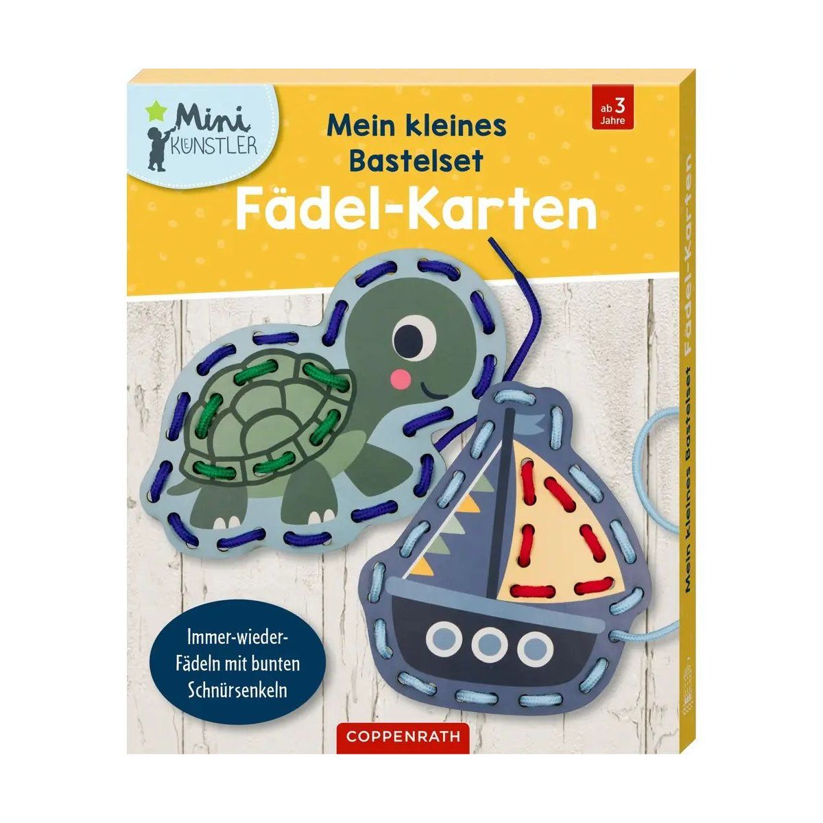 Geschickt eingefädelt: Kreativ basteln, fantasievoll fädeln! Zwei Karten mit Schildkröte und Segelboot gestalten Vier bunte Schnürsenkel für Immer-wieder-Fädelspaß Fördert Motorik und Kreativität ab 3 Jahren Dieses Bastelset lädt Kinder zu kreativen Stunden ein. Mit den bunten Schnürsenkeln lassen sich Schildkröte und Boot durch geschicktes Einfädeln immer wieder neu gestalten – so wird altersgerecht Kreativität wie Fingerfertigkeit gefördert. Ein kleines Set mit großer Wirkung, ideal für Kinder ab 3 Jahren als spaßige Beschäftigung für kreative Nachmittage und lustige Kindergeburtstage sowie als kleine Geschenkidee.