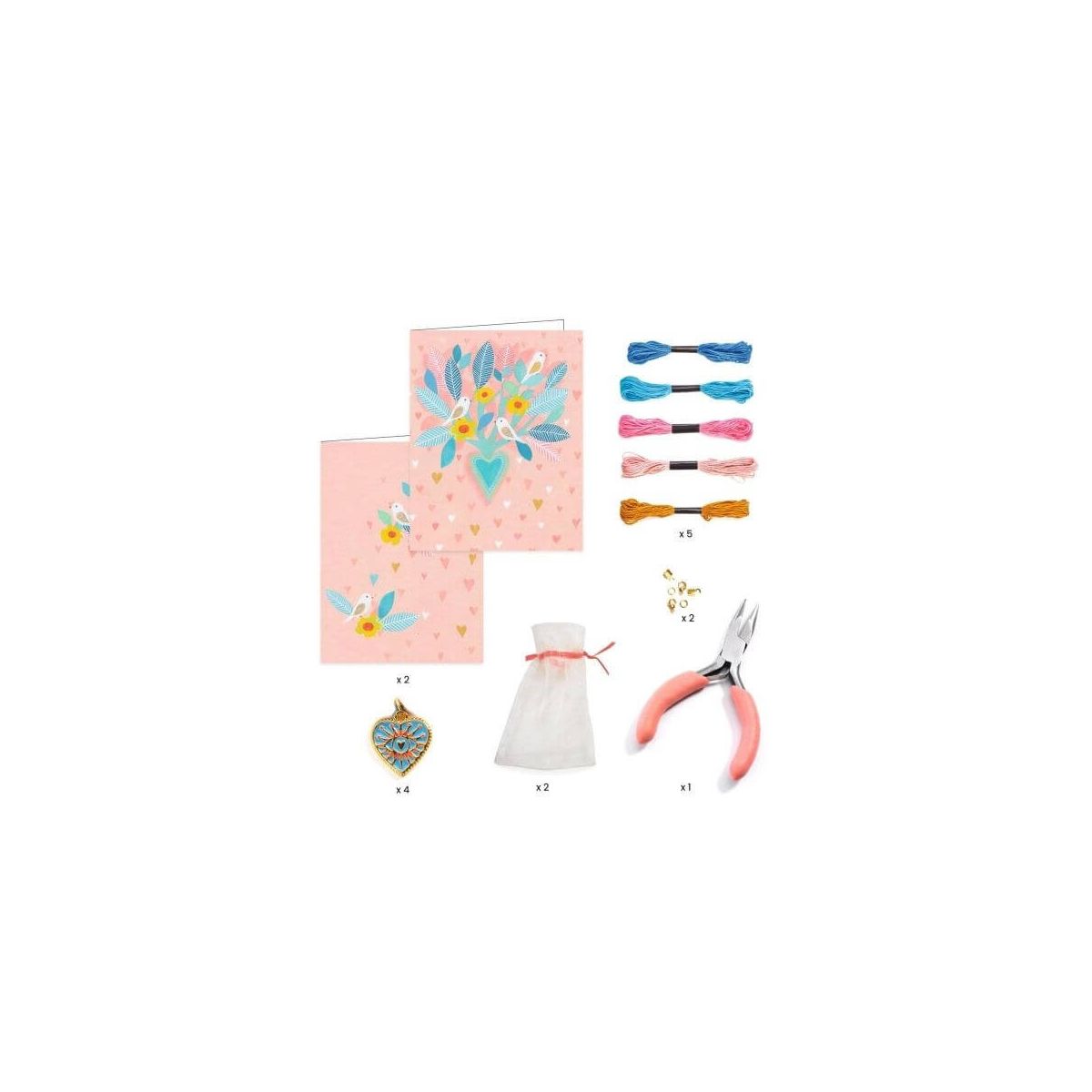 In einer hübschen, glänzenden Schachtel befindet sich eine Auswahl an Herz-Charms und Bändern, mit denen du zwei Armbänder herstellen kannst. 2 Schmuckstücke zum Aufbewahren oder Verschenken in einem hübschen Organzabeutel. Und für noch mehr Erinnerungen sind zwei illustrierte Karten enthalten, auf die du süße Nachrichten schreiben kannst. Alle Materialien sind in einer hübschen Schachtel enthalten. 2 Schmuckstücke für sich selbst oder als Geschenk für deine Lieben. Eine abgestimmte Auswahl an Perlen und einzigartigen Charms für ein garantiert gelungenes Ergebnis. 2 illustrierte Karten und 2 Organzabeutel. Eine unterhaltsame Aktivität, ob allein oder zu mehreren. Ein erklärendes Büchlein mit Bildern und Farben. Inhalt: 5 Baumwollstränge, 4 Charms, 1 Zange und 2 Verschlüsse, 1 erklärendes Büchlein, 2 Organzabeutel, 2 illustrierte Karten. Alter: + 10 Jahre Verpackungsgröße: 16 x 12 x 3 cm.