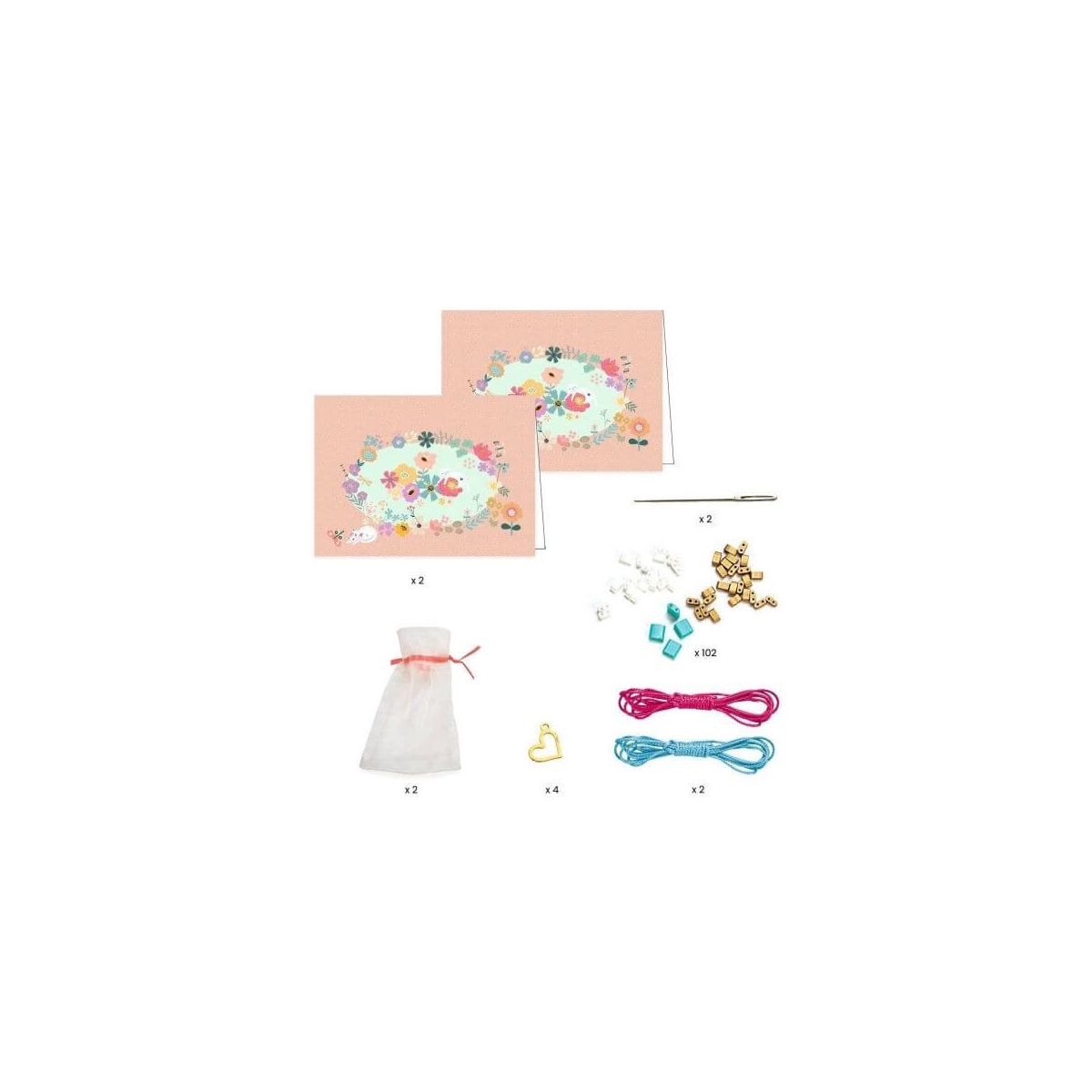 In einer hübschen, glänzenden Schachtel befindet sich eine Auswahl an Perlen und Blumen-Charms, mit denen du zwei Armbänder in Frühlingsfarben herstellen kannst. 2 Schmuckstücke zum Aufbewahren oder Verschenken in einem hübschen Organzabeutel. Und für noch mehr Erinnerungen sind zwei illustrierte Karten enthalten, auf die du süße Nachrichten schreiben kannst. Alle Materialien sind in einer hübschen Schachtel enthalten. 2 Schmuckstücke für sich selbst oder als Geschenk für deine Lieben. Eine abgestimmte Auswahl an Perlen und einzigartigen Charms für ein garantiert gelungenes Ergebnis. 2 illustrierte Karten und 2 Organzabeutel. Eine unterhaltsame Aktivität, ob allein oder zu mehreren. Ein erklärendes Büchlein mit Bildern und Farben. Inhalt: 102 Perlen, 4 Charms, 2 m gewachstes Garn, 2 Nadeln, 1 erklärendes Büchlein, 2 Organzabeutel, 2 illustrierte Karten. Alter: + 10 Jahre Verpackungsgröße: 16 x 12 x 3 cm.