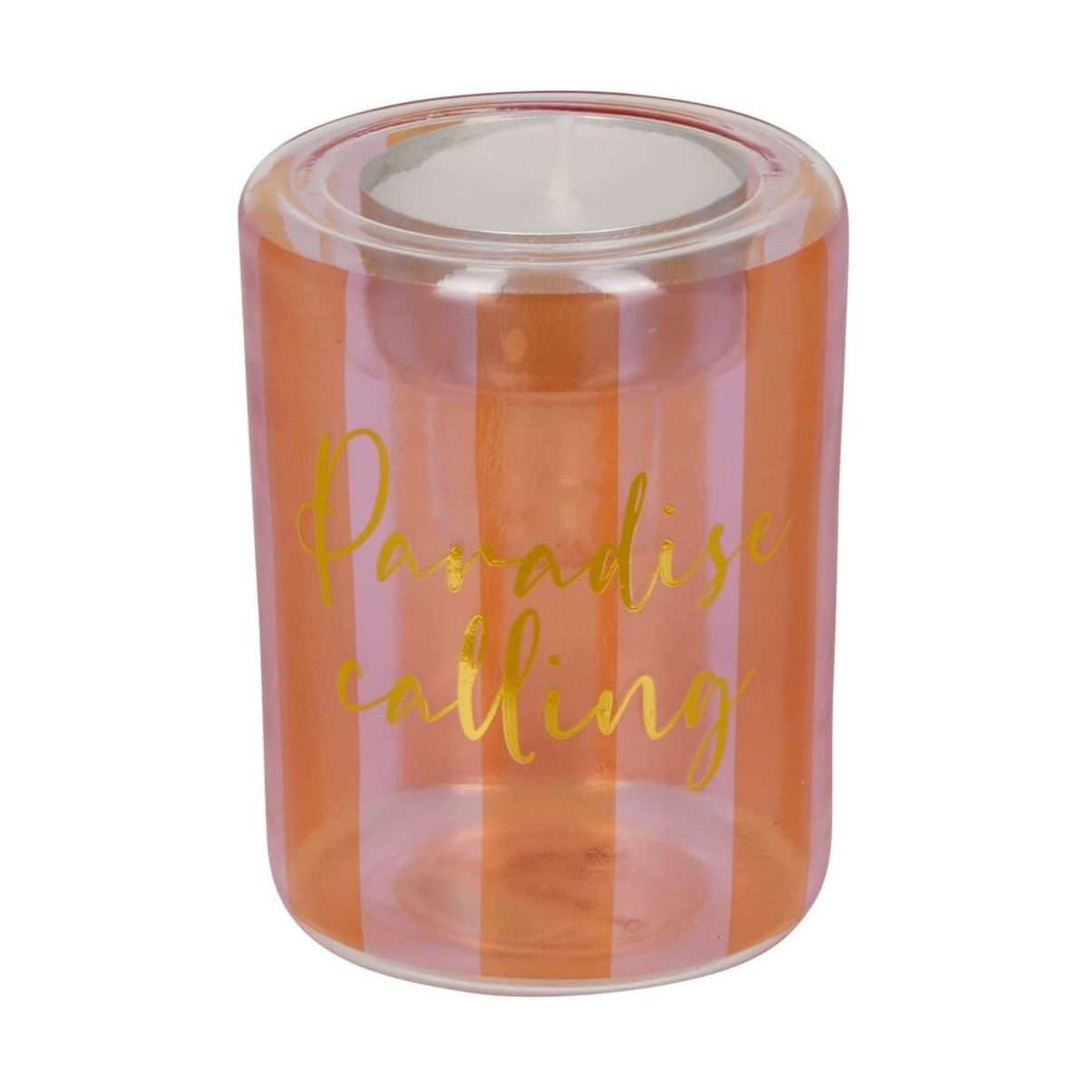 Entfliehe dem Alltag und tauche ein in ein wahres Urlaubsparadies! Mit dem 2-in-1 Kerzenständer ''Paradise calling'' von Die Spiegelburg holst du dir nicht nur eine herrliche Atmosphäre in deine Räume, sondern auch ein Stück tropische Gelassenheit. Dieser stilvolle Kerzenständer ist perfekt geeignet sowohl für Stabkerzen als auch Teelichter. Egal ob du es lieber romantisch und gemütlich magst oder eine Party im tropischen Stil planst, dieser Kerzenständer ist ein absolutes Must-Have für dein Zuhause. Der Kerzenhalter aus Glas mit Golddruck sorgt für langanhaltende Freude und die paradiesischen Farben erinnern dich jeden Tag an traumhafte Strände und entspannte Sonnenuntergänge. Mit diesem 2-in-1 Kerzenständer kannst du dir eine kleine Auszeit gönnen, wann immer du möchtest. Einfach eine Kerze anzünden, zurücklehnen und den Alltag hinter dir lassen. Die warme, sanfte Atmosphäre wird dich sofort in Urlaubsstimmung versetzen..