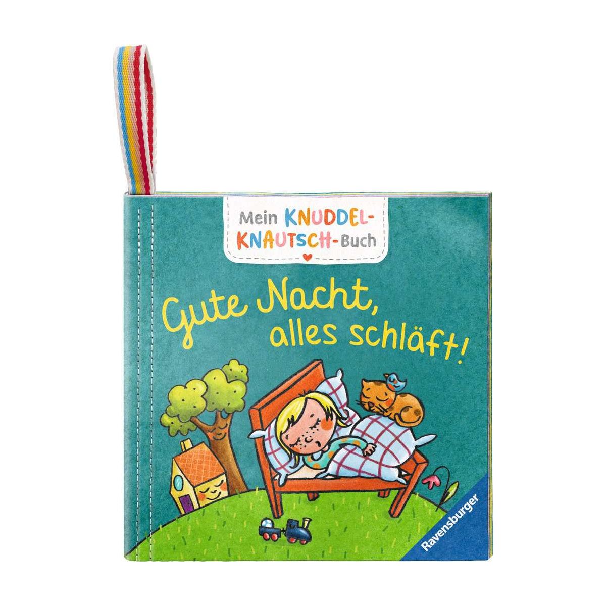 Stoffbuch zum Kuscheln, Knabbern und BadenAlle schlafen: die Sonne, die Katze und die Vögel, die Spielsachen und schließlich auch du! Eine allererste Gute-Nacht-Geschichte.Ein kuschelstarkes Buch für jede Gelegenheit! Dieses federleichte Stoffbuch für Kinder ab 6 Monaten kommt mit ins Bett, in den Sandkasten, in die Badewanne und auch mal in die Waschmaschine. Unser buntes Knuddel-Knautsch-Buch lädt dazu ein, Bücher mit allen Sinnen zu entdecken ? egal, ob mit Händen oder Zähnen. Mein Knuddel-Knautsch-Buch ist ein superstarkes Stoffbuch für jede Gelegenheit! Es ist besonders robust und lässt sich weder zerreißen noch zerbeißen. Trotzdem ist es kuschelweich und federleicht, sodass es auch für Kinder ab 6 Monaten bereits gut greifbar ist. Die bunten Bücher laden dazu ein, erste Geschichten mit allen Sinnen zu entdecken. Waschbar bei 60°C wird dieses Buch zu einem langlebigen Begleiter für kleine Leseratten.Mit der praktischen Schlaufe wird es schnell am Hochstuhl, Laufstall oder Kinderwagen befestigt..