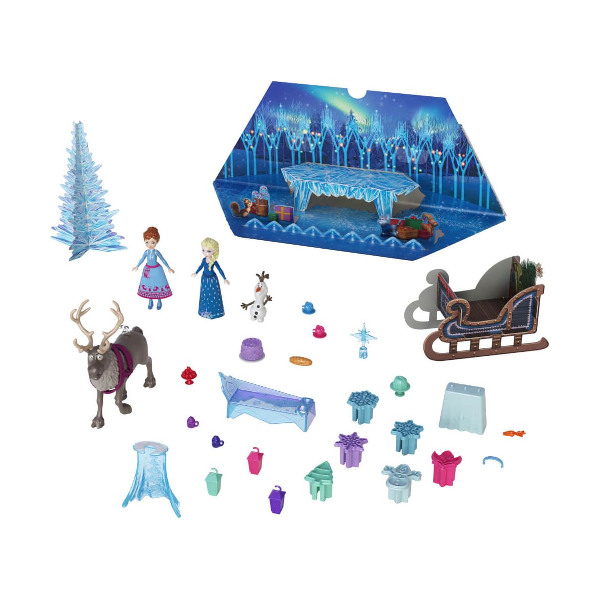 Mit dem Disney Die Eiskönigin Adventskalender können Kinder die Weihnachtszeit mit 24 Tagen voller Spaß so richtig genießen! Jeden Tag erwartet sie eine Überraschung, darunter kleine Anna- und Elsa-Puppen (ca. 9 cm) und Olaf- und Sven-Freundefiguren. Mehr als 20 weitere Überraschungen warten darauf, entdeckt zu werden. Darunter formbarer Sand, Sandförmchen und herausdrückbare Spielteile. Es ist das perfekte Weihnachtsgeschenk für Fans von Disneys Die Eiskönigin und Die Eiskönigin Olaf taut auf. Die Puppen können nicht von allein stehen. Abweichungen in Farbe und Gestaltung vorbehalten..