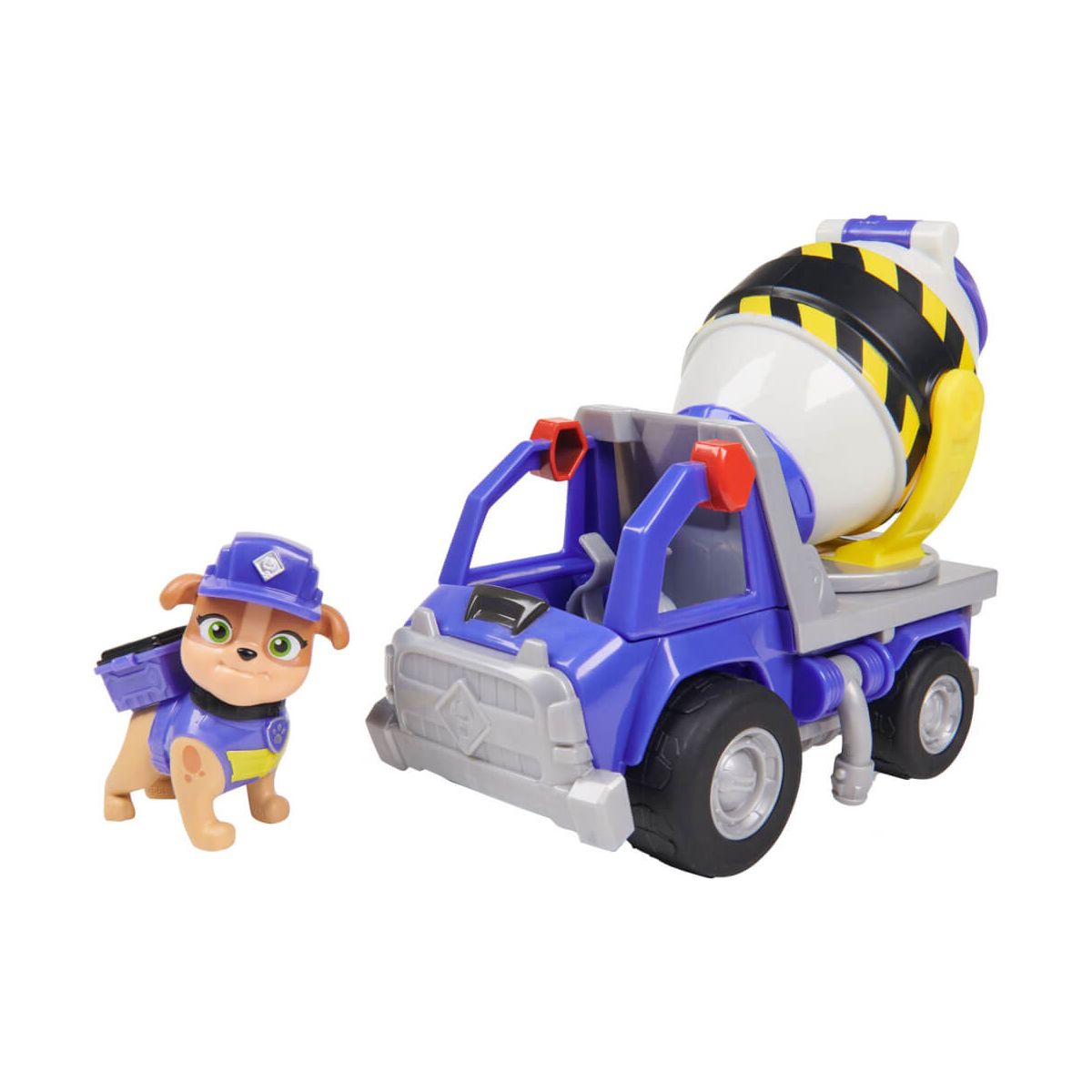 Mit Mix und seinem Zementmischer-Baufahrzeug können Kinder auch zuhause ihre Lieblingsszenen aus der TV-Serie Rubble Crew nachspielen und ihre ganz eigenen Geschichten erfinden. Als Rubbles Cousin und Teil der Bauarbeiter-Crew ist Mix mit seinem Betonmischer-Baufahrzeug stets zur Stelle, wenn er für ein spannendes Bau-Projekt in Bau-Bucht gebraucht wird. Mit funktionierenden Rädern, dreh- und kippbarer Mischtrommel und einem kleinen Staufach ist Mix‘ Zementmischer-Baufahrzeug bereit für spannende Abenteuer mit Rubble und seiner Crew. Die detailreichen Baufahrzeuge mit Funktion unterstützen Kinder ab 3 Jahren dabei, ihre Feinmotorik weiterzuentwickeln und ihre Fantasie anzuregen. Das Zementmischer-Fahrzeug und eine abnehmbare Mix-Spielfigur sind im Lieferumfang inbegriffen. Für noch mehr Baustellen-Action mit Rubble Crew warten schon die Baustellen-Fahrzeuge von Rubble, Wheeler und Charger auf ihren Einsatz..