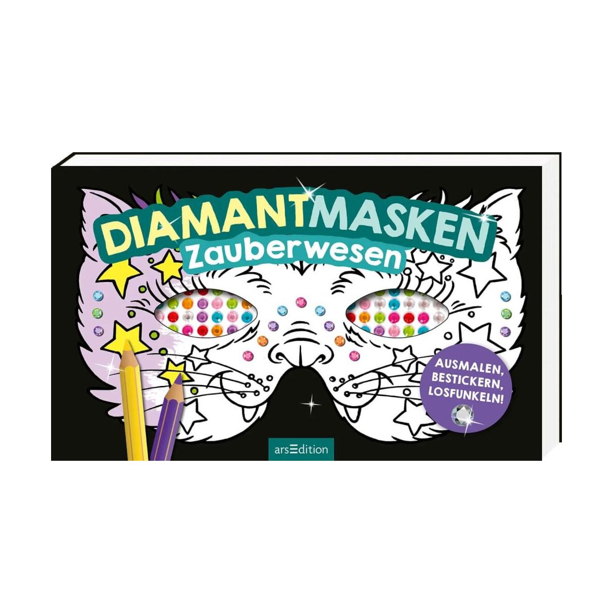 Zauberhafter Maskenspaß! In diesem Malblock warten 16 wunderbare Fantasie-Motive darauf, kunterbunt ausgemalt und mit Diamantstickern dekoriert zu werden. Ob Drache, Fee oder magisches Tier: Hier ist für jeden ein Lieblingsmotiv dabei, das man mit über 400 Diamantstickern bekleben kann. Die Masken sind sofort bereit, aufgesetzt zu werden. Egal, ob für Fasching oder Karneval, einen Kindergeburtstag oder einfach mal so: Der schön illustrierte Malblock bietet idealen Verkleidungsspaß für Kinder ab 5 Jahren. • 16 originelle Motive: In diesem Maskenblock gibt es für jeden Geschmack ein Lieblingsmotiv • Über 400 Diamantsticker: Die beigefügten Diamantsticker sorgen für den Extra-Glow und lassen Kinderherzen höherschlagen • Ausmalen und Spaß haben: Die Masken aus dickem Papier lassen sich nach Lust und Laune mit Buntstiften, Wasserfarben, Filzstiften und Wachsmalern gestalten • Vorgestanzte Form: Augen, Nase und Löcher für ein Gummiband sind bereits ausgestanzt. So können die Kinder direkt loslegen und brauchen weder Schere noch Kleber Ein großes Mal– und Dekovergnügen für die nächste Kinderparty! Allen Kindern macht es Spaß, sich eine Maske auszusuchen, sie zu gestalten und sich damit zu verkleiden!.