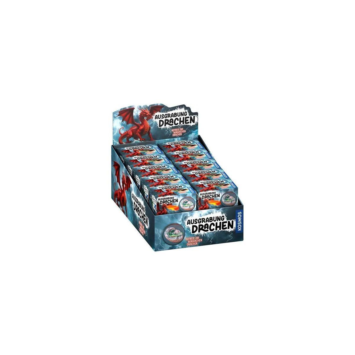 Ein rotes schuppiges Ei? Daraus kann nur ein Drache schlüpfen! Aber ist es eine blaue Sturmschwinge, ein roter Feuerschlinger oder der giftige Keulenschwanz? In diesem Ausgrabungs-Set finden Kinder ab fünf Jahren acht verschiedene Drachen. Einfach aus der Pappverpackung nehmen, das Gips-Ei kurz in Wasser legen und los geht das Ausgraben! Mit dem beiliegenden Meißel-Werkzeug geht das Freilegen aus dem besonderen Gipsmaterial ganz einfach. Durch erneutes Einlegen in Wasser kann der Gips noch zusätzlich aufgeweicht werden. In der Anleitung finden sich außerdem noch spannende Infos zu den Drachen..