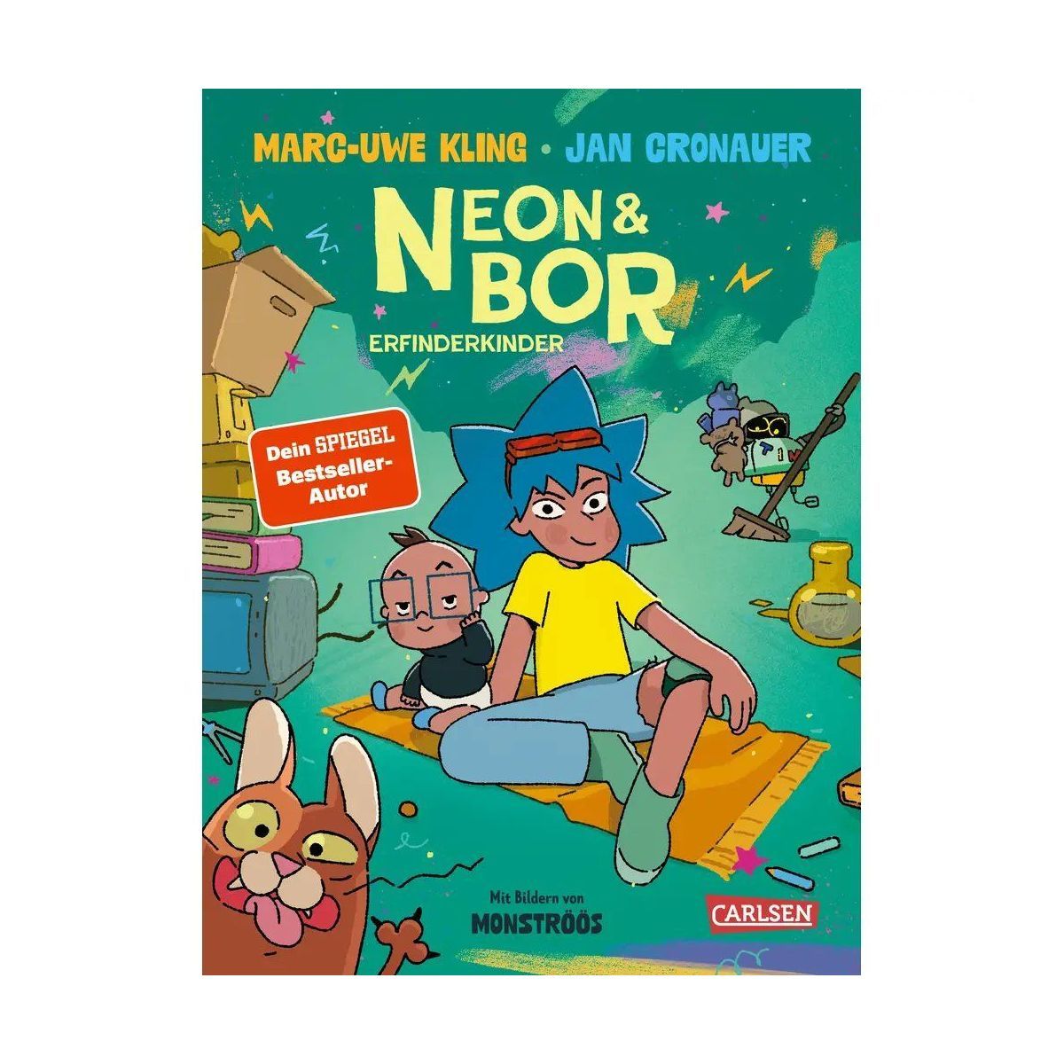 Neon ist superschlau. Und ihr kleiner Babybruder Bor ist mindestens hochbegabt. Wenn sie ein Problem haben, dann lösen sie es immer durch eine Erfindung. Hättest du nicht auch gerne einen Roboter, der dein Zimmer aufräumt? Oder einen Vergrößerungsblasenwerfer, der den letzten Keks so groß wie eine Torte macht? Vielleicht sogar eine Zeitschleifenröhre, dank der du jeden Tag Geburtstag hast? Neon und Bor werkeln ständig an solchen Erfindungen. Allerdings – seien wir ehrlich – führen ihre Problemlösungen oft zu noch größeren Problemen. Doch die kann man ja durch neue Erfindungen lösen! Genial!.