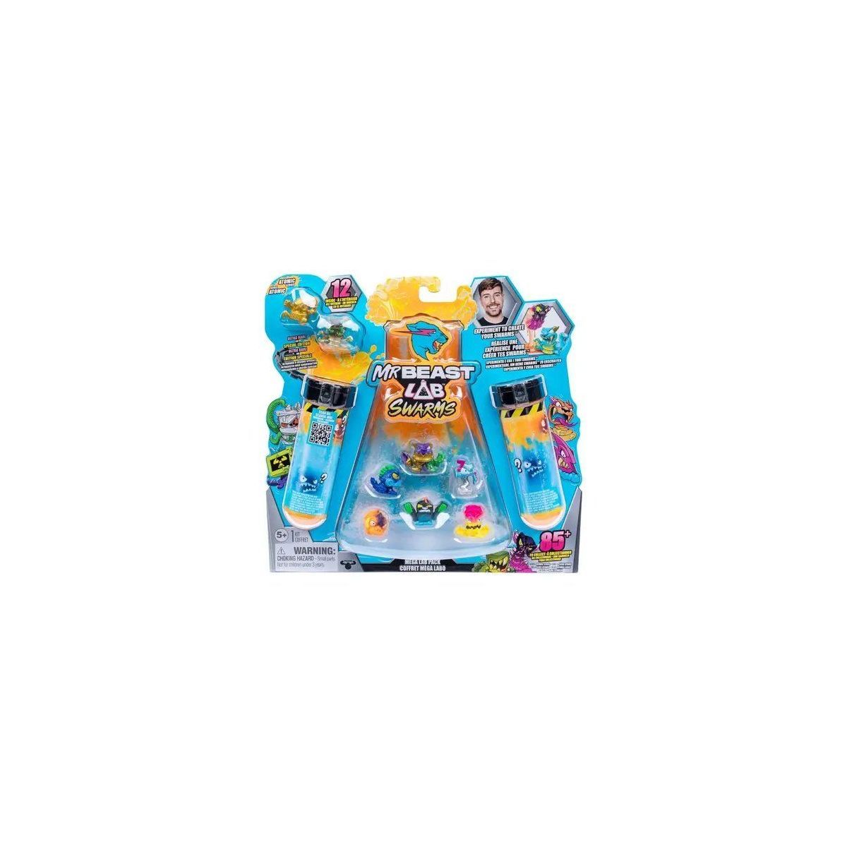 Entfessle einen Schwarm von Charakteren mit den MrBeast Lab Swarms! Führe das Experiment durch, indem du Flüssigkeit hinzufügst, das Reagenzglas schüttelst und zwei der 100 einzigartigen Charaktere enthüllst. Einschließlich der Möglichkeit, den seltenen Hyperchrome Panther in limitierter Auflage zu sammeln. Diese Packung enthält 2 Swarms. Lass das Chaos beginnen! 4 verschiedene, zufällige Sortimente Mehr als 100 Figuren zum Sammeln Figuren-Größe: 2,5 cm Inhalt: 12 x Swarms-Figuren (8 davon sind sichtbar) inkl. 2 seltener Charaktere, 2 x Reagenzglas + Deckel, 6 x auflösbare Papiertüte, 2 x Sprudelmischung, 1 x Sammelanleitung Alter: 5+.
