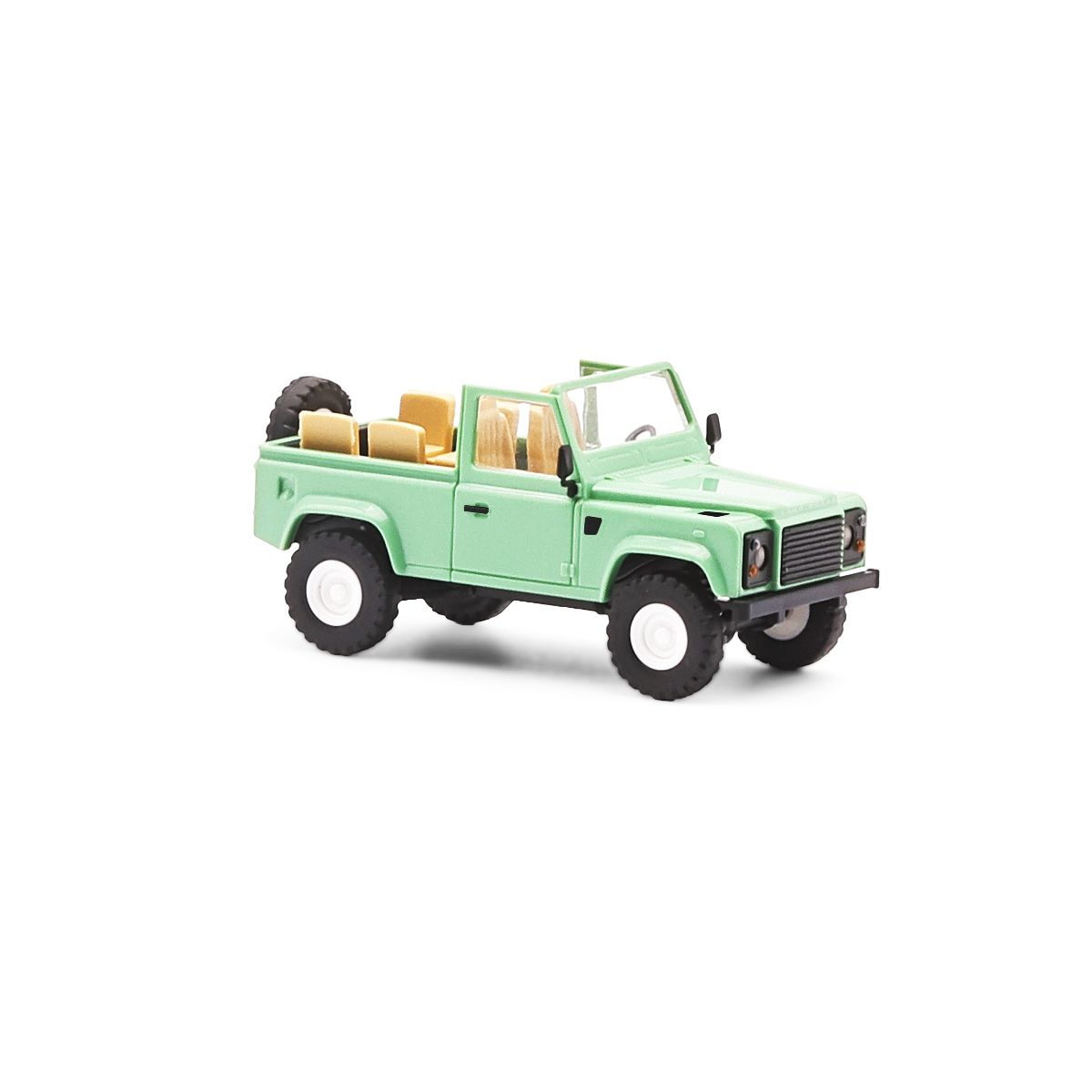 Klein aber oho! Der Automobilhersteller Land Rover produziert seit 1948 das gleichnamige Fahrzeug, dessen ursprüngliche Entwicklung (1947) zunächst ausschließlich der zivilen Nutzung in der Landwirtschaft zugute kam. Die ersten drei Modellreihen erhielten dabei nur die simple Bezeichnung Serie I, II und III. Erst die vierte Serie (ab 1983) wurde unter der Bezeichnung One Ten (110 Zoll Radstand) bzw. Ninety (90) propagiert. Typisch für Land Rover sind die Zahlen bei den Modellnamen, sie geben Auskunft über die Radstände (90, 110, 130 Zoll) bei den Fahrzeugen, auch wenn zugunsten gerundeter Zahlen etwas abgewichen wird. So müsste die korrekte Bezeichnung eigentlich 93 lauten, da der Achsstand 93 Zoll misst (beim 130er beispielsweise 127 Zoll). Die Bezeichnung Ninety behielt der kleine Defender bis zu seiner Umbenennung im September 1990. Nach Einführung der Baureihe Discovery 1990 wurde eine Differenzierung notwendig und die Land Rover Modelle erhielten die Bezeichnung Defender. Neu ist auch, dass nach 35 Jahren erstmals die Starrachsen an Schraubenfedern statt an Blattfedern aufgehängt sind. Auch wird die bisher zweigeteilte Windschutzscheibe durch eine durchgängige Scheibe ersetzt und die Kotflügel erhalten eine Verbreiterung aus Kunststoff. Das ursprünglich für zivile Nutzung entwickelte Fahrzeug wurde dank seiner Robustheit häufig bei unwegsamen Expeditionen eingesetzt, so ist es auch kein Wunder, dass der Defender noch heute in vielen Krisengebieten zu finden ist. Bei verschiedenen Hilfsorganisationen und auch beim Militär ist das zuverlässige Fahrzeug nicht mehr wegzudenken. Besonders in privaten Bereichen wird der robuste Land Rover als Geländefahrzeug hoch geschätzt. Bei dem Busch-Modell handelt es sich um den Defender 90 County Station Wagon (CSW), der fortan als kleines Kraftpaket in unwegsamen H0-Modelllandschaften über Stock und Stein fährt. Scharfe Konturen und detailreiche Features machen aus dem groben kantigen Klotz ein richtiges Schmuckstück. Auch die charakteristische Sitzanordnung der Innenausstattung ist vorbildgerecht wiedergegeben, ebenso wie das andersfarbige Dach. Die Frontansicht des Modells wird beherrscht durch die große schwarze Kühlermaske, in der helle transparente Scheinwerfer in Klarglasoptik sowie feinste transparente Blinker eingesetzt sind. Die grobstolligen Reifen und typgerechten Felgen perfektionieren das markante Erscheinungsbild. Mit diesem Modell erhält die Busch-Geländewagen-Collection ein weiteres Highlight an geländegängigen Fahrzeugen mit Kultstatus..