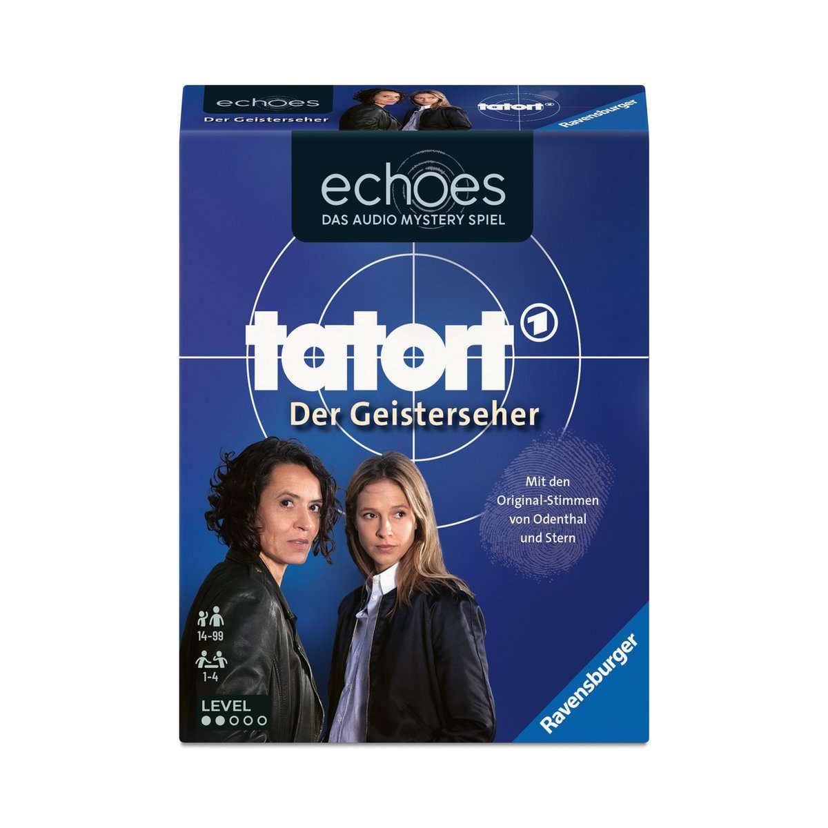 Tatort in der Pfalz: Bauer Feldmann wurde ermordet. Die Spieler ermitteln gemeinsam mit Lena Odenthal und Johanna Stern. echoes ist ein kooperatives Audio Mystery Spiel. Die Spieler hören mithilfe der kostenlosen Ravensburger echoes App mysteriöse Geräusche und Stimmen, die mit den Kartenmotiven verbunden sind. Gemeinsam bringen sie die 24 Teile der Geschichte in die richtige Reihenfolge, um den Fall zu lösen.Die kostenlose Ravensburger echoes App wird zum Spielen benötigt. Im Lauschen-Modus der App können die Spieler die Sounds abspielen. Im Lösen-Modus überprüfen die Spieler jeweils vier Karten auf ihre Reihenfolge, um Kapitel für Kapitel zu lösen. Zum Schluss müssen die Spieler die gesamte Geschichte in die richtige Reihenfolge bringen, um den Fall zu lösen.Für ein optimales Spielerlebnis mit Kamera-Erkennung wird ein Gerät mit folgenden Anforderungen benötigt: Mindestens iPhone 6s mit iOS 12.0 oder neuer / Android-Gerät mit mindestens Android 7.0 und kompatibel mit den Google-Play-Diensten für AR (Diese können auf manchen Geräten nachträglich installiert werden). Falls das Gerät diese nicht erfüllt, kann per manueller Eingabe gespielt werden..