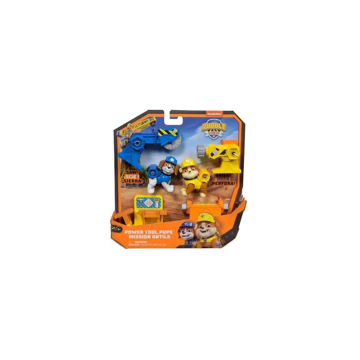 Auf einer Baustelle gibt es immer was zu tun. Das wissen die beiden fleißigen Bauarbeiter-Fellfreunde Rubble und Wheeler aus der beliebten Serie Rubble Crew nur zu gut. Also ran an die Arbeit. Mit diesem Spielset des dynamischen Duos und ihrem mitgelieferten Werkzeug und Zubehör können Kinder auch zuhause die Abenteuer auf der Baustelle erleben und ihre Lieblingsszenen aus der Serie nachspielen. Die Hundefiguren von Rubble und Wheeler sind ca. 5 cm groß und tragen ihre niedlichen Uniformen mit Helm - genau wie in der Serie. Außerdem besitzen sie Werkzeugrucksäcke, die auf den Figuren einrasten. Die beiden tierischen Bauarbeiter haben einen Schlagbohrer und eine Kettensäge im Gepäck, die Werkzeuge können an den Rucksäcken von Rubble und Wheeler befestigt werden. Sind die fleißigen Hunde mit ihren Werkzeugen verbunden, können sie nach unten gedrückt werden und so das mitgelieferte Bauzubehör bedienen: eine Werkbank und ein Absperrschild. Dieses Spielset wird Fans von Rubble begeistern. Die Spin Master Spielzeuge von Rubble Crew sind ein tolles Geschenk für alle, die Baustellen lieben. Sie fördern die Feinmotorik und Fantasie von Kindern. Neben diesem Spielset gibt es von Spin Master eine ganze Welt an Spielsachen zu der beliebten Serie, wie Fahrzeuge, Figuren und Geschenksets (separat erhältlich). Für alle Kinder ab 3 Jahren.