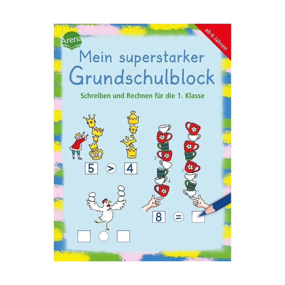 Erstes Schreiben, erstes Rechnen: So wirst du Grundschul-fit! Buchstaben einsammeln, Reime finden oder Bilder erkennen – mit lustigen Übungen werden in diesem extradicken Block erste Wörter geschrieben. Daneben gibt es zahlreiche Rechenübungen wie Rechen-Labyrinthe, Malen nach Zahlen oder lustige Zahlen- und Mengenspiele. So trainieren Kinder ab 6 Jahren spielerisch erstes Schreiben und Rechnen. Ganz nebenbei stärken die 80 Lernspiele außerdem Wahrnehmung, Konzentration und logisches Denken – Erfolgserlebnisse garantiert! • Extradickes Format mit 80 Lernspielen • Trainiert grundlegende Kompetenzen für die Grundschule • Praktisches Blockformat für Links- und Rechtshänder Fit durch die Grundschulzeit • Extradickes Format mit 80 Lernspielen • Mit Schreibübungen, Rechentraining und lustigen Malspielen • Trainiert grundlegende Kompetenzen für die Grundschule.