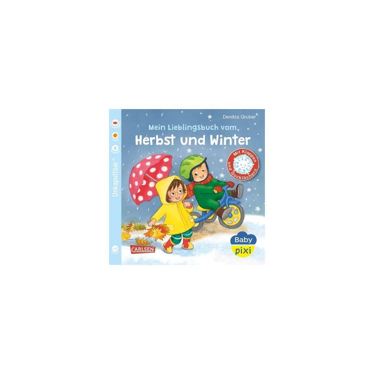 Spielerisch die kalten Jahreszeiten kennenlernen - mit Klappen und Gucklöchern zum Staunen! Schau mal, wie sich alles wandelt! Welche Früchte wachsen im Herbst an den Bäumen? Wer läuft mit Laternen durch die Straßen? Und wann gibt es endlich Schnee? Dieses Buch lädt kleine Hände zum Entdecken ein: Durch Greifen und Staunen wird die Vorlesezeit besonders lebendig und interaktiv - ganz nebenbei wird auch noch die Feinmotorik gefördert. Ein wichtiger Baustein für die frühkindliche Entwicklung! Alltagsnahe Szenen helfen Kindern, ihre eigene Welt wiederzuerkennen, und machen es ihnen leicht, die Veränderungen der Jahreszeiten zu verstehen. Warmherzig illustriert von Denitza Gruber. Ein erstes Lieblingsbuch für Kinder ab 1 Jahr! Baby Pixi für die ganz Kleinen: Das innovative Material ist wasserfest und reißfest. Baby Pixi - einfach unkaputtbar®!.