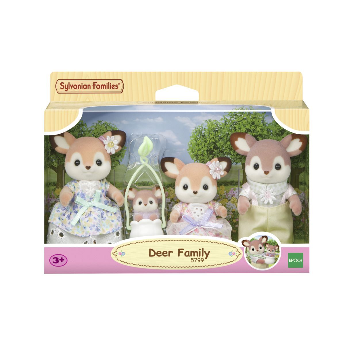 Triff die goldige Sylvanian Families Reh Familie und erlebe mit ihr aufregende Spielabenteuer! Marius ist ein liebevoller Familienvater, der sich immer um seine Familie sorgt. Mutter Primrose bastelt für ihr Leben gerne und hat fast alles im Haus selbstgemacht. Wenn Tochter Sofia nicht gerade Gedichte schreibt, läuft sie herum und erkundet im Eiltempo die Welt. Ganz im Gegensatz zu ihrem Bruder Kai, der es bevorzugt entspannt unter einem Baum zu liegen und das Blättertreiben zu beobachten. Die samtig-weichen Sylvanian Families Tierfiguren mit ihren großen Ohren, liebevollen Gesichtern und detailreichen Outfits laden Kinderzu fantasievollen Rollenspielen ein. Die Babyfigur kann in die Blättertrage gesetzt und herumgetragen werden. Das Set kann auch ideal mit den Reh Zwillingen (5800) oder den Reh Babys mit Blumenschaukel (5801) kombiniert werden. Die Sylvanian Families Reh Familie enthält Vater, Mutter, Tochter, ein Drillings Baby und eine Trage. Die Figuren sind 3-8 cm groß. Kopf, Arme und Beine der großen Figuren sind beweglich und für Kinder ab 3 Jahren geeignet..