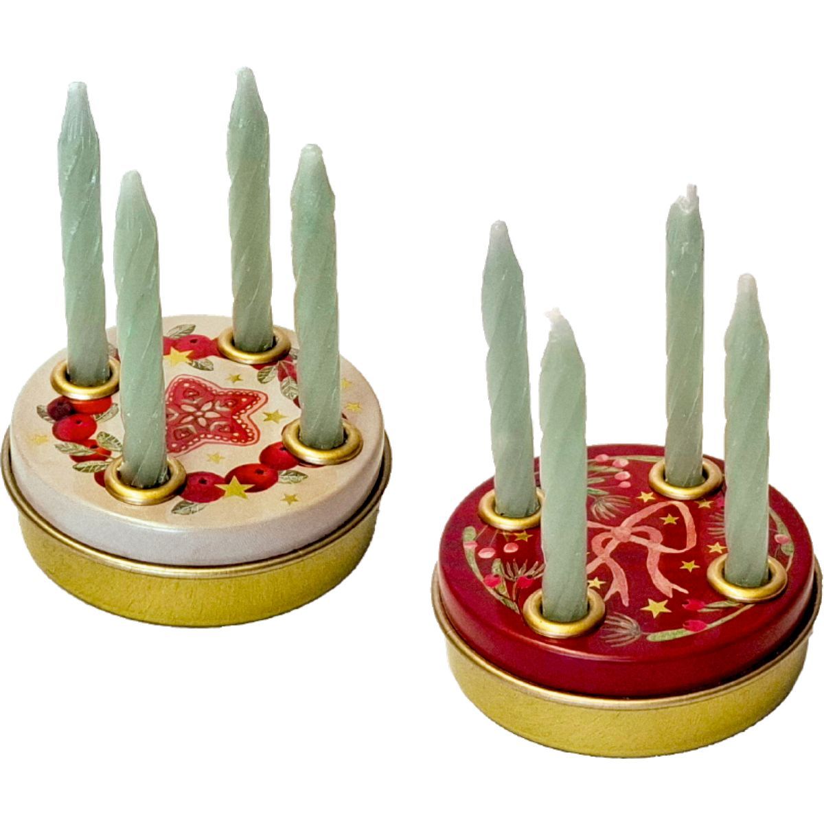 Adventsstimmung im kleinen Format! Der Mini-Adventskranz - Festliche Weihnachten von Die Spiegelburg lässt sich überall aufstellen - ob zuhause, im Büro oder unterwegs. In der dekorativen Dose mit einem Durchmesser von ca. 4,5 cm verstecken sich vier Mini-Kerzen, die mit ihrem warmen Licht für weihnachtliche Stimmung sorgen..