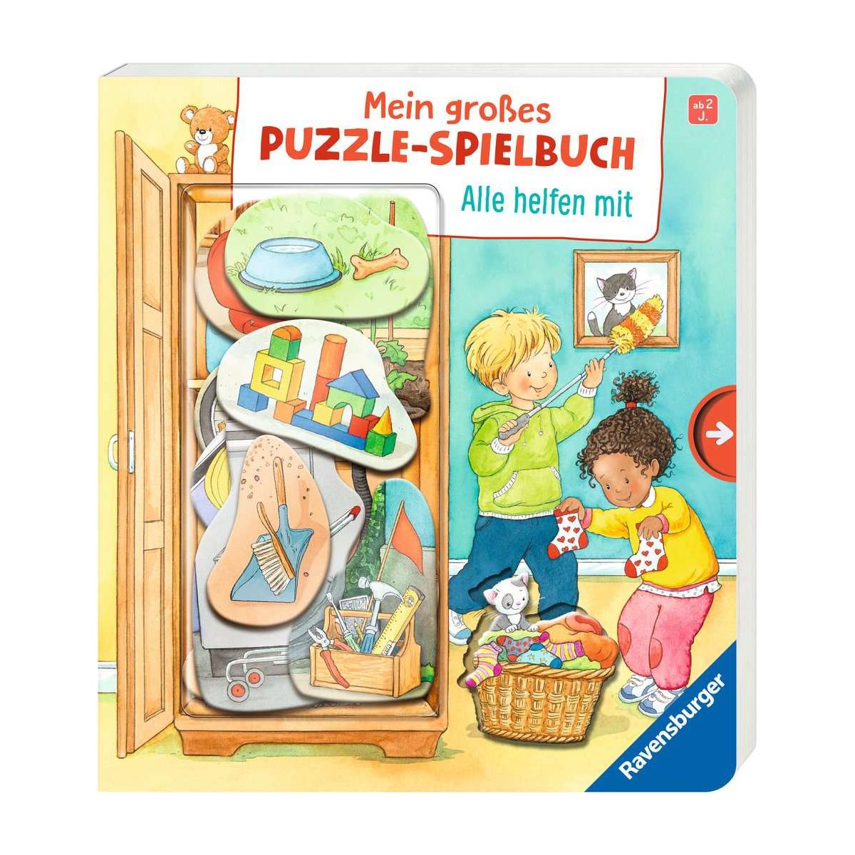 Großer Puzzlespaß für kleine HändeAlle helfen mit, denn bei Familie Becker gibt es viel zu tun: Emils Fahrrad reparieren, den Boden staubsaugen und Lenis Kinderzimmer aufräumen. Hilfst du auch mit? Hole einen Napf mit frischem Wasser für Hund Bruno, lege beim Einkaufen die Sachen aufs Band oder pflanze mit Oma einen Tomatenstrauch im Garten. Zehn große, stabile Puzzleteile zum Einsetzen bieten langanhaltenden Spielspaß. Kurze Texte helfen beim Zuordnen der Motive und erzählen kleine Geschichten.Puzzlespaß für alle, die gern mithelfen! Auf den fünf Seiten können insgesamt 10 abwechslungreiche Motive eingesetzt werden. Passgenaue Vertiefungen erleichtern das Einsetzen und kurze Texte helfen beim Zuordnen der richtigen Puzzleteile. Machst du mit und bringst den neuen Reifen auf Emils Fahrrad an? Und kannst du Leni den Handfeger bringen?Die liebevoll gestalteten Szenen geben Kindern ab 2 Jahren die Möglichkeit selbst mitzuhelfen. Das Buch ist im Handumdrehen wieder aufgeräumt und sortiert: Nach dem Spielen können die Puzzleteile einfach im Buch verbleiben. Es fällt nichts heraus. Auch der praktische Behälter auf dem Buchcover bietet Platz zum Aufbewahren der Teile..