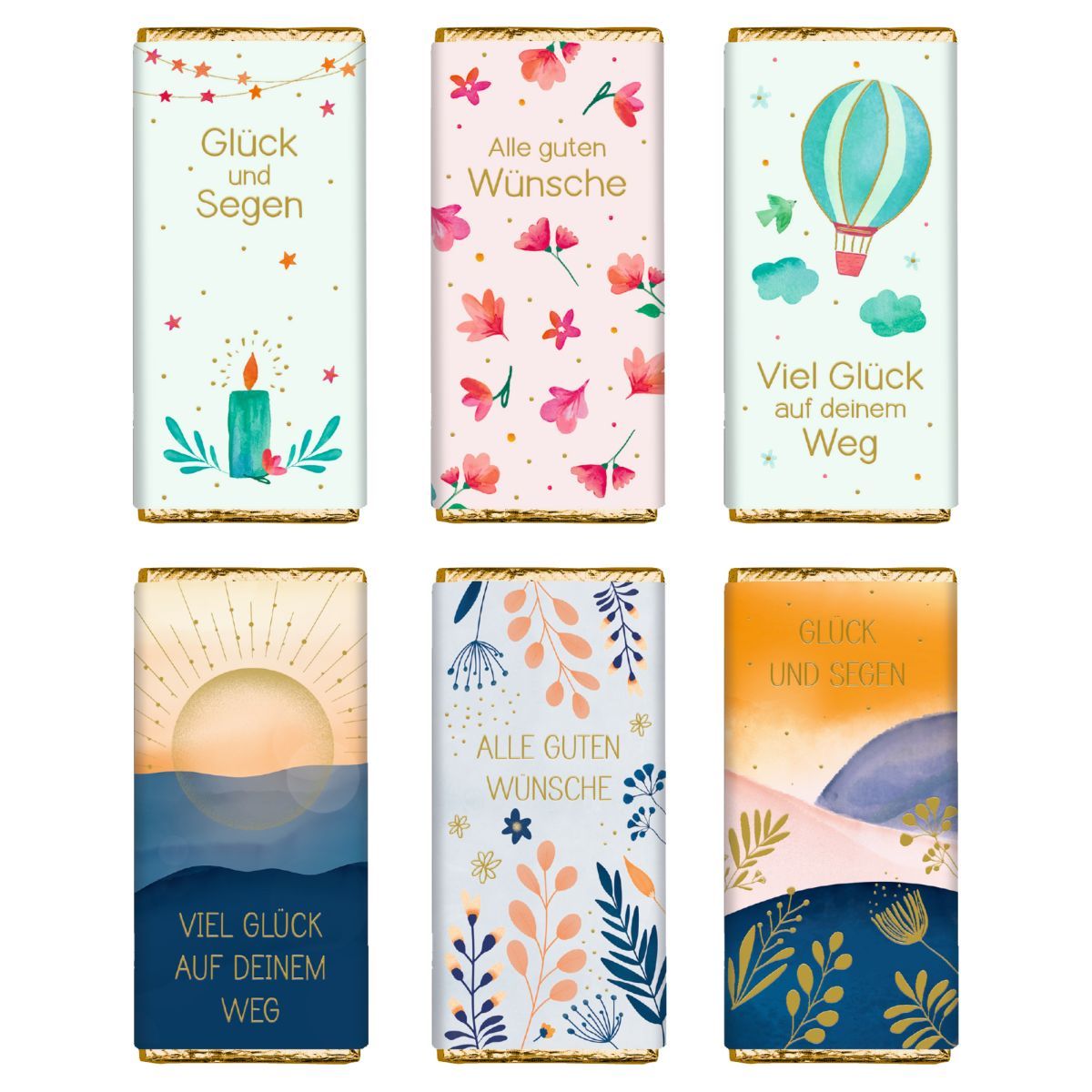 Schokolade, die von Herzen kommt 30 g feinste Vollmilchschokolade: Für kleine Genießer mit großem Geschmack Liebevolle Gestaltung: Mit Glücks- und Segenswünschen auf stilvollen Banderolen In sechs hübschen Designs: Für jeden Anlass das passende Motiv Süßer Gruß: Ideal zur Taufe, Kommunion, Geburtstag oder als Mitbringsel Kleines Geschenk mit Bedeutung: Für Kinder und Erwachsene gleichermaßen Diese feine 30g Vollmilchschokolade ist nicht nur ein Genuss, sondern auch eine liebevolle Geste: Die stilvoll gestalteten Banderolen sind mit Glück- und Segenswünschen versehen und machen jede Tafel zu einem kleinen Botschafter der Freude. In sechs bezaubernden Designs erhältlich, eignet sie sich als süßer Gruß zu vielen Anlässen – von der Taufe bis zum Geburtstag, vom Abschied bis zum Dankeschön..