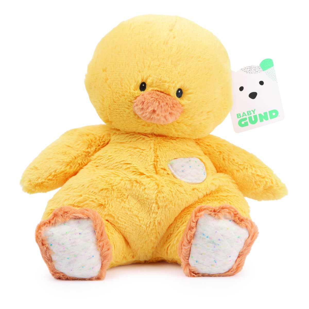 Babys und Kleinkinder brauchen viel Nähe und Kuscheleinheiten, um gesund und glücklich aufzuwachsen. Steht gerade kein Familienmitglied zur Verfügung, wird das liebste Plüschtier geherzt und gedrückt. Das Entchen der Traditionsfirma GUND ist dafür ideal, weil es auch hochwertigem, super weichem Plüschmaterial hergestellt ist und nur gerade so viel Füllung besitzt, dass es sich leicht zusammendrücken lässt. Außderm können kleine Hände es leicht überall greifen, festhalten und, ob beim Krabbeln oder Laufen, mitnehmen. Hier kommt dann die Qualität von GUND ins Spiel. GUND weiß, dass kleine Kinder nicht immer zimperlich mit ihren Lieblingsspielzeugen umgehen, daher wird auch bei der Verarbeitung höchsten Wert auf Qualität gelegt. Schließlich sollen Plüschtiere von GUND gerne zu Freunden für s Leben werden. Hinterteil und Füße des Entchens sind granulat-beschwert, damit das es aufrecht sitzen kann. In der Reihe der Kuschelspaß Tiere sind ebenfalls ein petrolfarbenes Nilpferd und ein roséfarbener Hase separat erhältlich. Weiter bietet GUND interaktive Plüschtiere, die zum Mitsingen und Lernen anregen sowie figürliche Schmusetücher und mehr..
