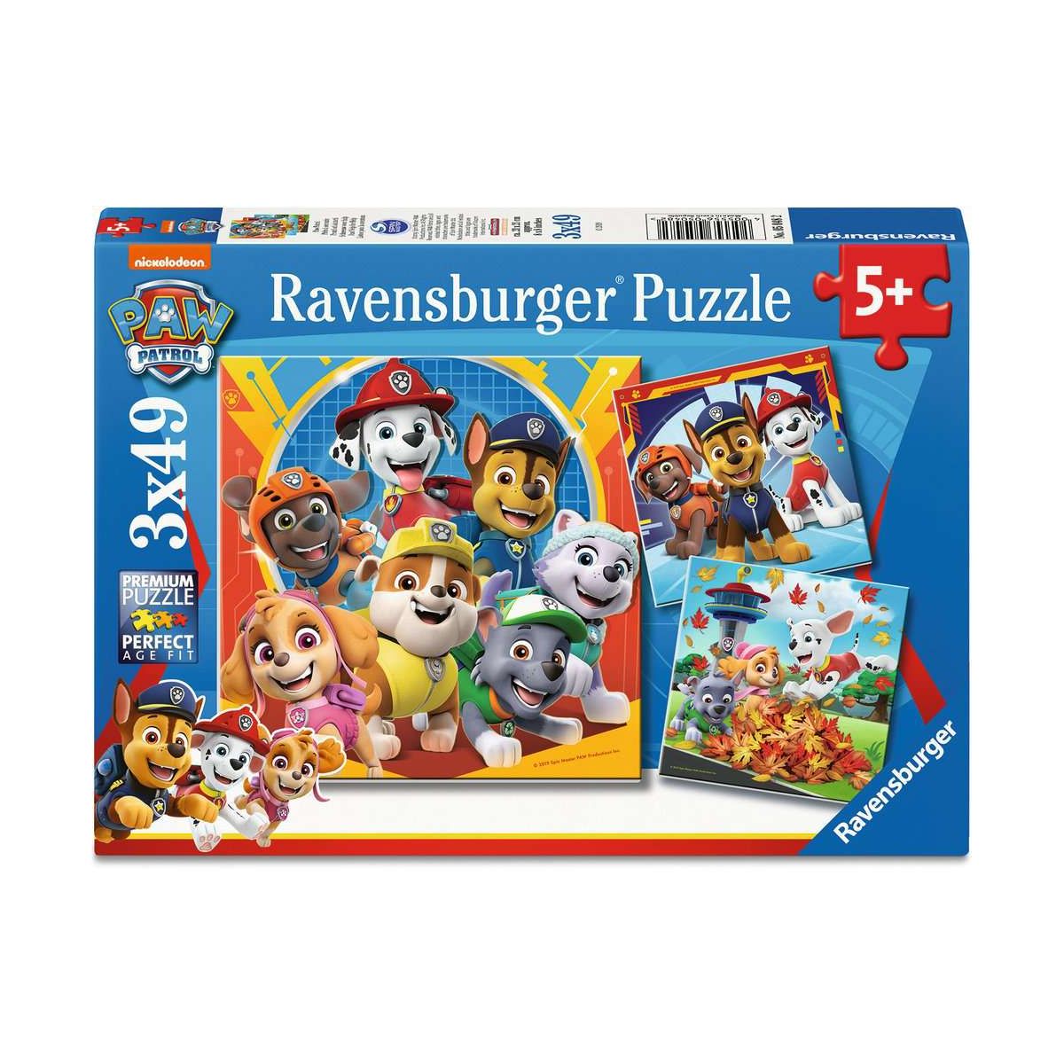 Ein Set mit 3 lustigen Motiven zeigt Ihre Lieblingswelpen aus PAW Patrol in wunderschönen, bunten Farben. Chase, Marshall, Rubble, Rocky, Zuma und Everest warten auf den nächsten Einsatz, um den Tag zu retten! Während sie warten, nutzen Marshall, Skye und Rocky die Gelegenheit, um Spaß zu haben und im Herbstlaub zu spielen. PAW Patrol ist bereit für Action! Jedes Puzzle ist auf der Rückseite mit einem anderen Muster bedruckt, sodass die Puzzleteile vor dem Zusammensetzen sortiert werden können. Weltweit meistverkaufte Puzzle-Marke – Mit über 1 Milliarde verkauften Puzzles sind unsere Kinderpuzzles ideale Geschenke für Jungen und Mädchen. Unsere 3 x 49-teiligen Kinderpuzzles sind in Premium-Qualität gefertigt und haben fertig zusammengesetzt eine Größe von 17,8 x 17,8 cm. Tolle Puzzles für Kinder ab 5 Jahren.Das perfekte Spielzeug für Ihr Kind – Puzzles für Kinder jeden Alters fördern die Entwicklung Ihres Kindes beim Spielen und stärken Fähigkeiten wie Konzentration und Kreativität. Positiv rätseln – Von lustigen gemeinsamen Familienmomenten über langfristige gesundheitliche Vorteile bis hin zu achtsamen Momenten im Alltag – das einfache Puzzle hat so viele positive Seiten! Sie sind ein tolles Geburtstagsgeschenk oder ein großartiges WeihnachtsgeschenkTeile suchen, anfügen und sich über das immer größer werdende Bild freuen - Puzzeln ist, wenn sich ein Erfolg an den anderen reiht. Deshalb lieben Kinder es, die Puzzleteile immer wieder zu ihren Lieblingsmotiven zusammen zu setzen. Doch Puzzles bieten mehr als Spaß: Mit der richtigen Schwierigkeit gewählt, lassen sie Kinder jeden Alters an den Herausforderungen wachsen, erhöhen ihre Geduld und stärken ihr Selbstvertrauen. In der großen Auswahl von Ravensburger Kinderpuzzles mit den beliebtesten Motiven, von 2 Teilen bis 300 Teilen, ist garantiert für jedes Kind das Richtige dabei. Die Auswahl der Motive und die hohe Qualität unserer Kinderpuzzles liegen uns sehr am Herzen. Seit mehr als 100 Jahren entwickeln wir Puzzles, wie Kinder sie lieben: altersgerecht in Motiv, Teilezahl und -größe..