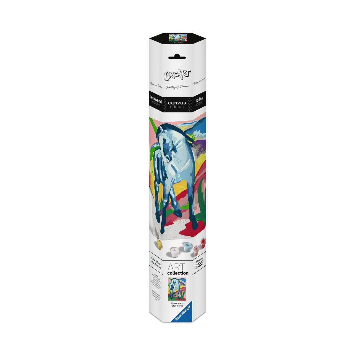 Die Malen nach Zahlen Art Collection, inspiriert von Meisterwerken berühmter Künstler wie van Gogh, Monet, Frida Kahlo und vielen anderen, bringt dir die Magie der Kunst nach Hause. Das beeindruckende Motiv Franz Marc: Blaues Pferd sorgt für großartigen Malspaß für Erwachsene ab 12 Jahren. Die Motivlinien sind bereits aufgedruckt und nummeriert und werden mit den fertig gemischten Acrylfarben ausgemalt. Das ist Malspaß mit Erfolgsgarantie für einen einzigartigen Wandschmuck. So einfach war malen noch nie!Mit CreArt - Malen nach Zahlen von Ravensburger den Weg zur inneren Ruhe und Entspannung finden. Einfach auspacken und los malen: jedes Malset enthält alles, was zum Malen benötigt wird und es ist kein Mischen der Farben notwendig. Das fertig gemalte Bild eignet sich als trendige Dekoration in jedem Zuhause. Das Ravensburger CreArt - Malen nach Zahlen Programm bietet eine große Motivauswahl für Kinder und Erwachsene..