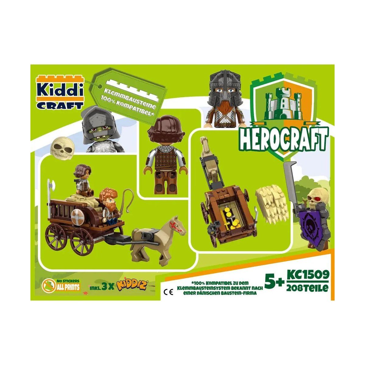 Auf dem Weg von der Zwergenmine zur Ritterburg KC1501 - ein gar gefährlich Unterfangen!Gut, wenn man diewertvollen Warenin einem Geheimfach unter Stroh verstecken kann.Schlecht, wenn der Ork etwas ahnt und einen überfall wagt. Das Set enthält: -208 Teile-3 KIDDIZ Figuren: 1 Zwerg, 1 Ork, 1 Wache- das nötige Zubehör um aus dem Ork einen Skelettkrieger zu machen- 1 Pferd Gute Qualität der Bausteine 100% kompatibel mit den Klemmbausteinen des Marktführers Gut verständliche Bauanleitung beiliegend alles Drucke – keine Aufkleber Designed in Deutschland - Hergestellt in China Achtung! Nicht für Kinder unter 3 Jahren geeignet, da Kleinteile verschluckt werden können. Erstickungsgefahr!.
