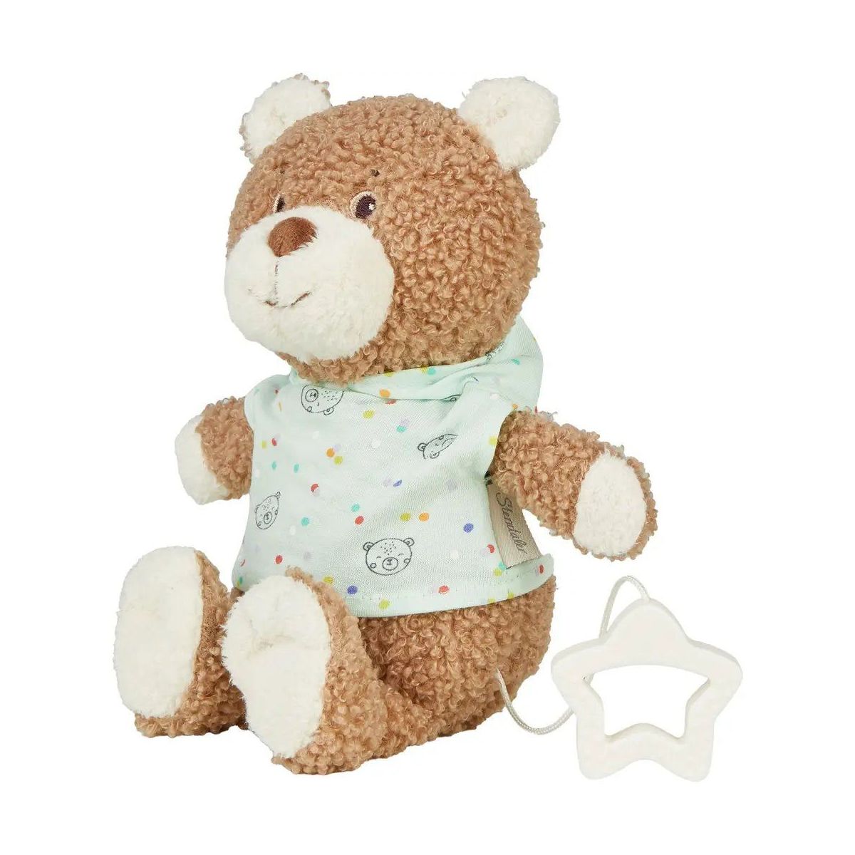 Spieluhr M BÄR Bo /// aus kuschligem Flausch und bedrucktem Jersey /// der Reißverschluss macht das Herausnehmen des Spielwerks einfach und die Figur ist problemlos waschbar /// Sternengriff /// Melodie: La Le Lu.